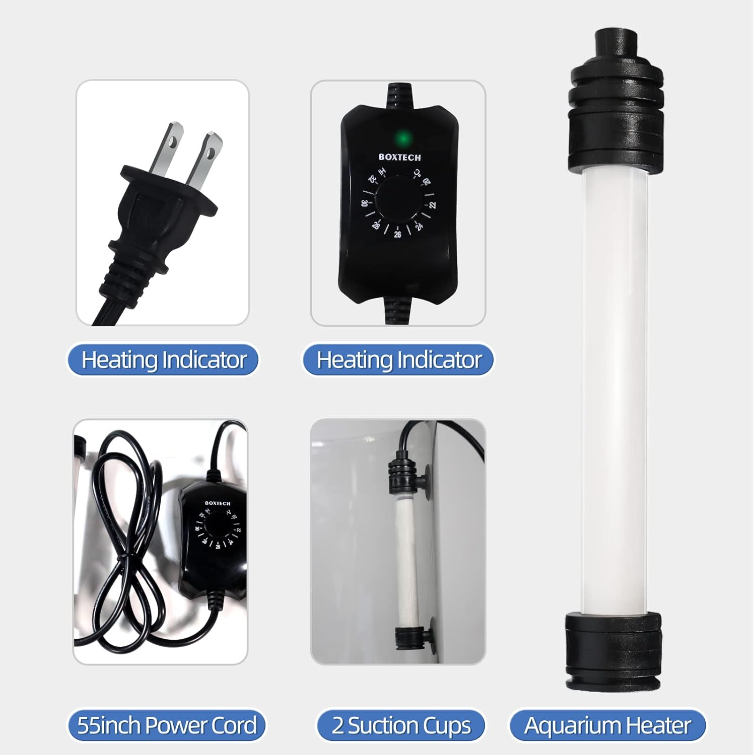 boxtech Aquarium Heater 50W, Submersible Fish Tank Thermostat Proof Explosion and Auto Digital Control, with Heat-Resistant Quartz Made for 5-15 Gworldnet027on