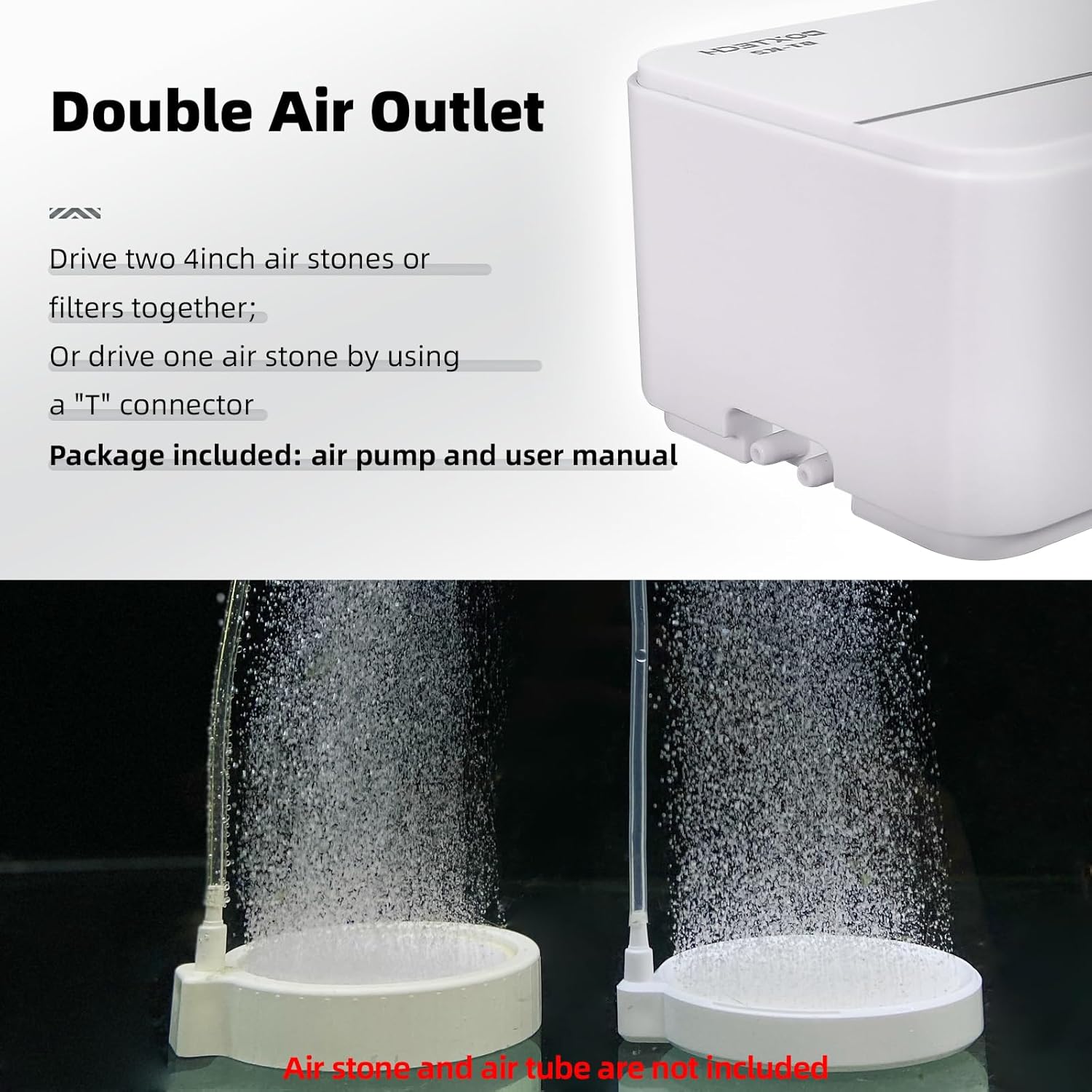 Wide Usage and Dual Air Outlet Pump: The aerator pump pumps uniform bubbles, natural and stable. Aerobic landscaping equipment that can be connected to Nano Air Stones, Biosponge Filters, Pinwheel Rock Gardens, and Aquariums.