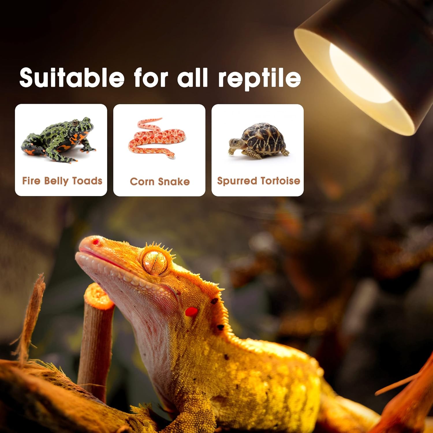 🦎 DIMMABLE HEAT LAMP BULB: You can use dimmers to adjust the most suitable brightness and temperature of the heat bulbs to keep the terrarium warm for your reptile pets.