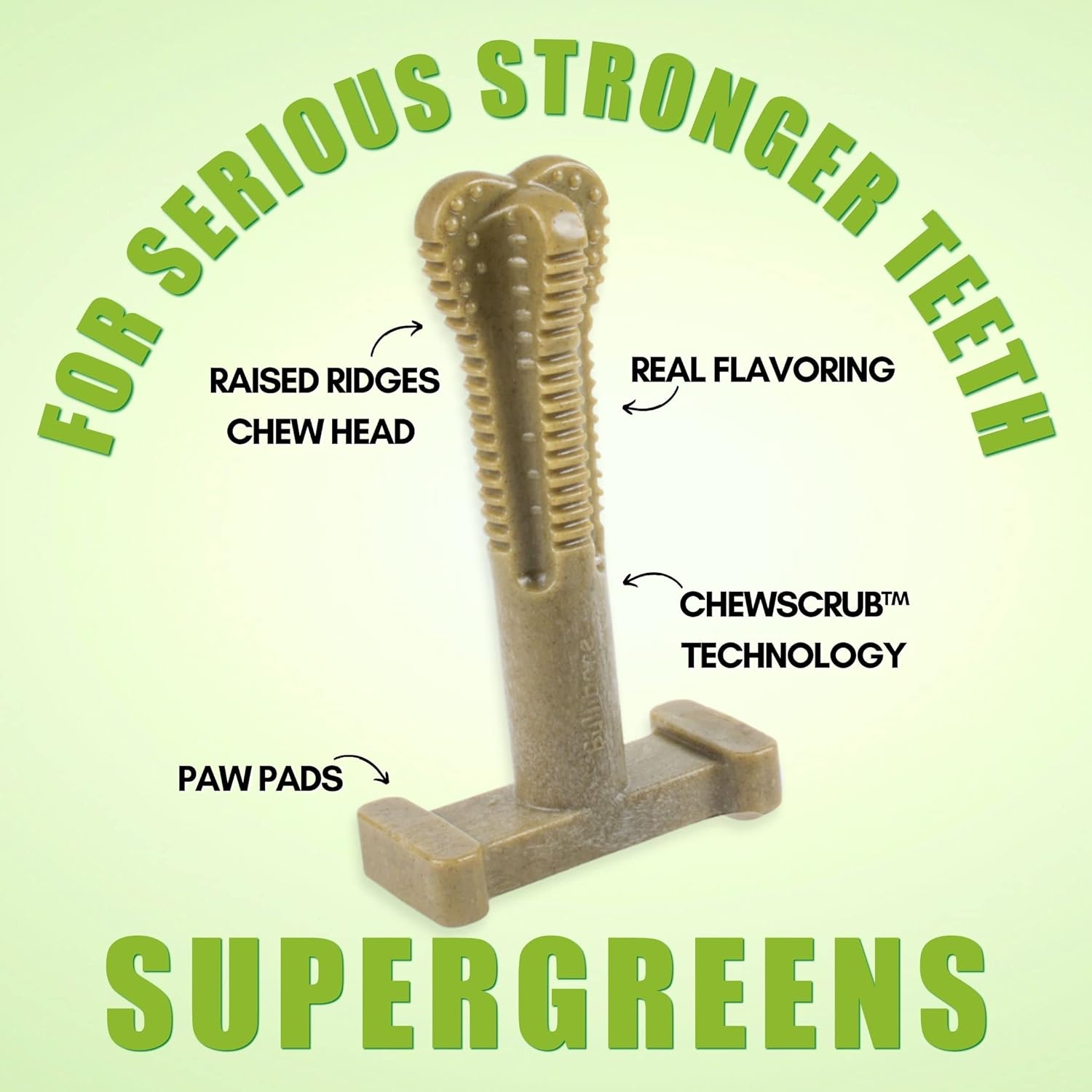 Bullibone SuperBrush: Dog Teeth Cleaning Brushing Toothbrush Stick – Long Lasting Nylon Super Greens Chew Toy for Oral Care and Dental Health