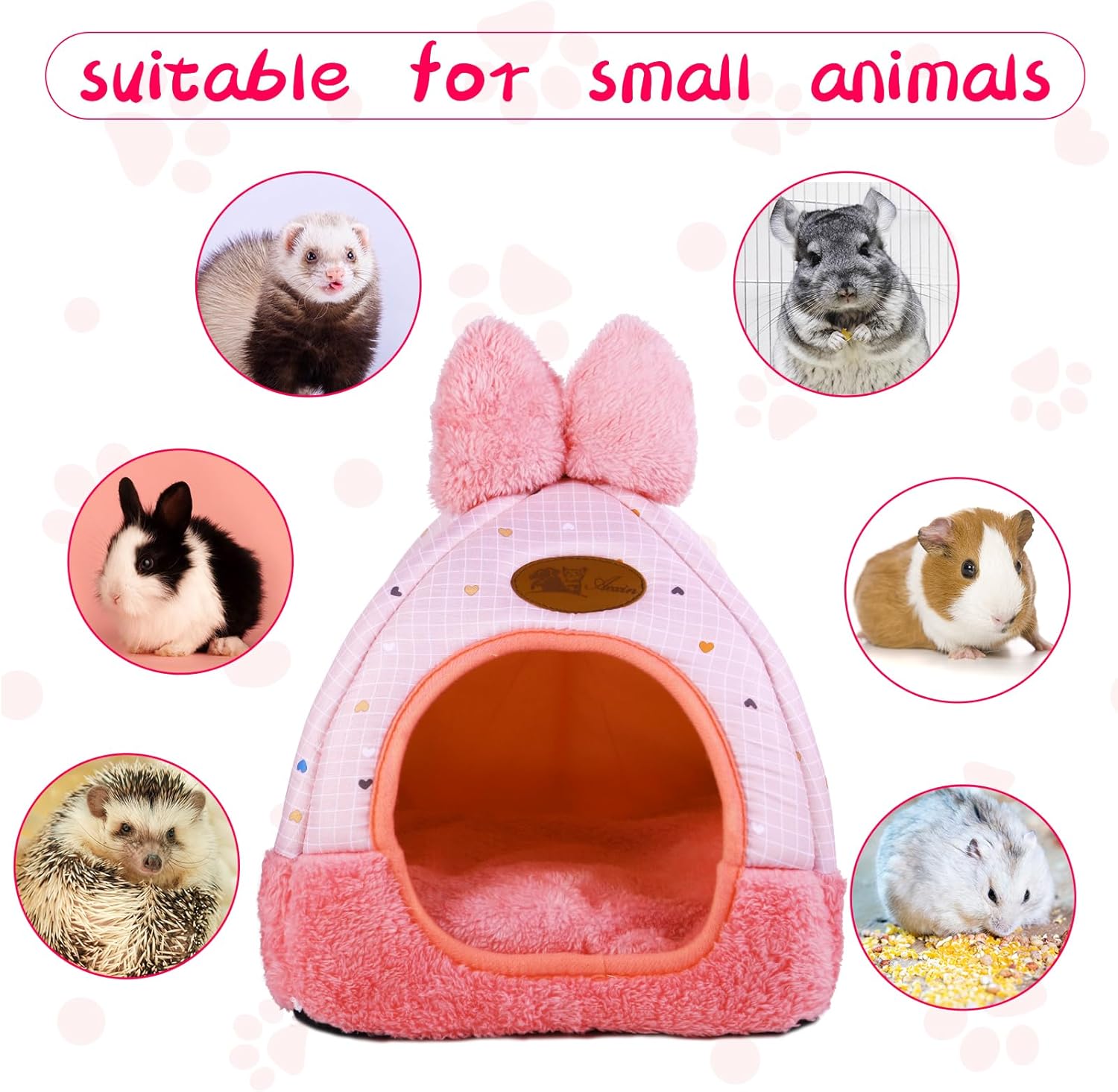 Bunny Bed Hideouts House Ferrets Rats Hedgehogs Chinchilla Cage Accessory for Rabbit Guinea Pig Hamster Cozy and Warm Rabbit Bed with Cute Bowknot Rabbits Hamster Bunny (Pink)
