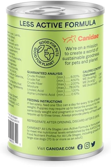 CANIDAE All Life Stages Less Active Wet Dog Food, Chicken, Lamb and Fish, 13oz