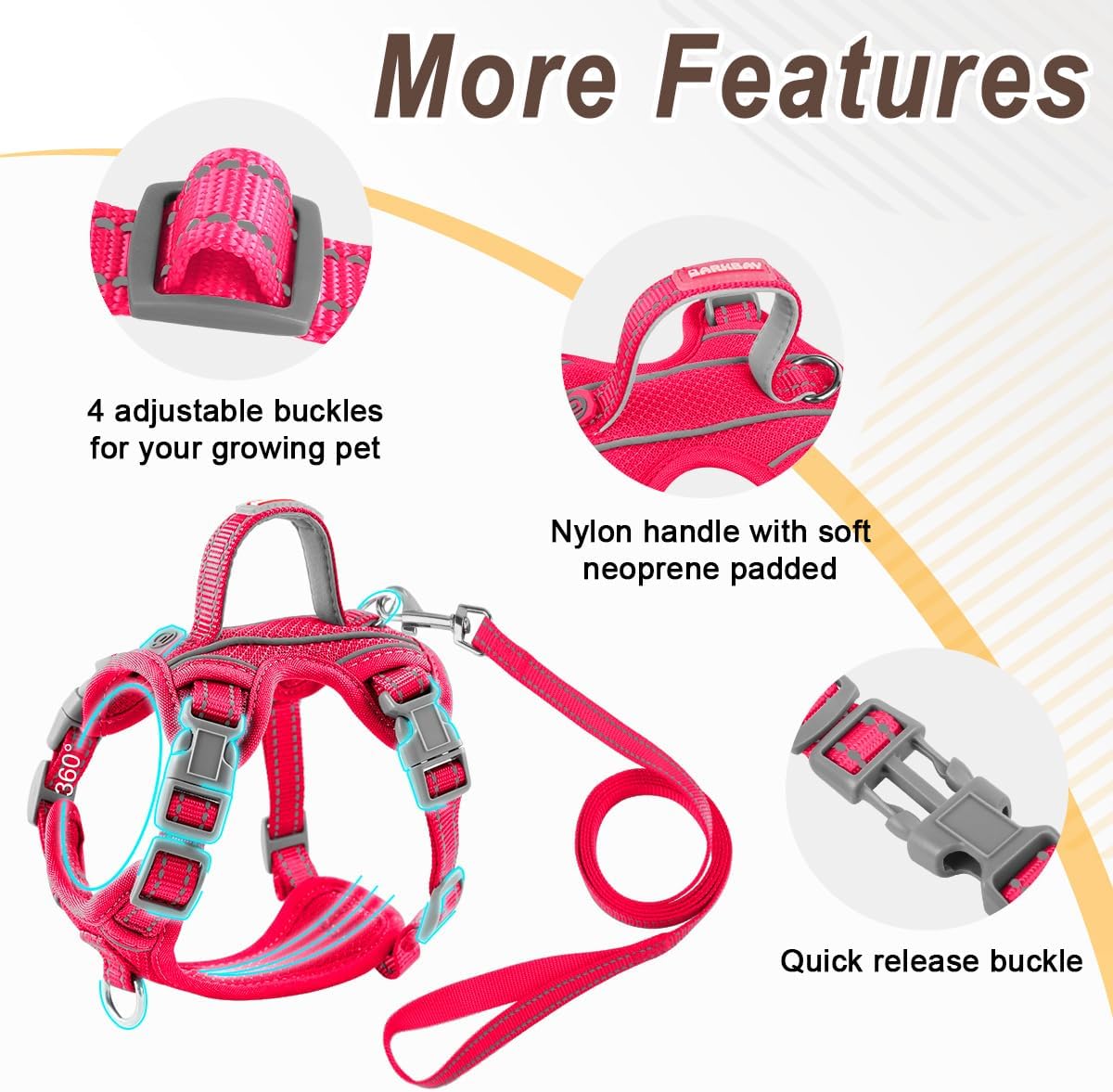 Higher Visibility and Safety: Reflective materials provides good visibility in the dark, which can be easily seen from a distance, ensuring the safety of furry friends.erials and meticulous techniques enable the entire harness to satisfy your kitten’s daily activities.