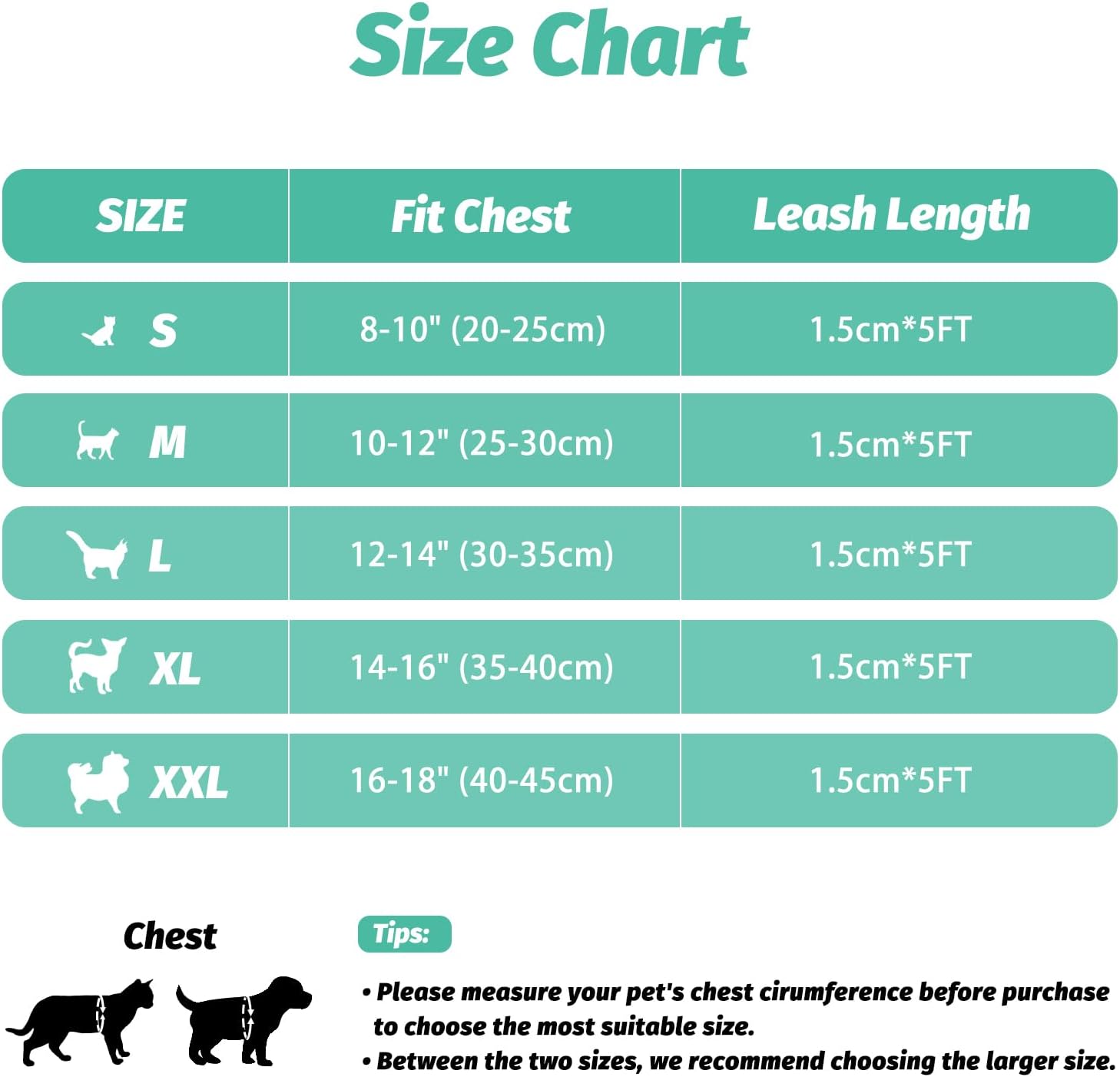 TIPS FOR CAT HARNESS: We are now upgrading our cat harness with more size and color choices! Please measure your cat’s chest and choose suitable size refer to the size chart before purchasing our cat harness and leash set, there may be some differences between different breeds of cats. This harness also suit for smworldnet027 dogs, the same please measure your dog’s chest before purchasing this harness and leash escape proof.