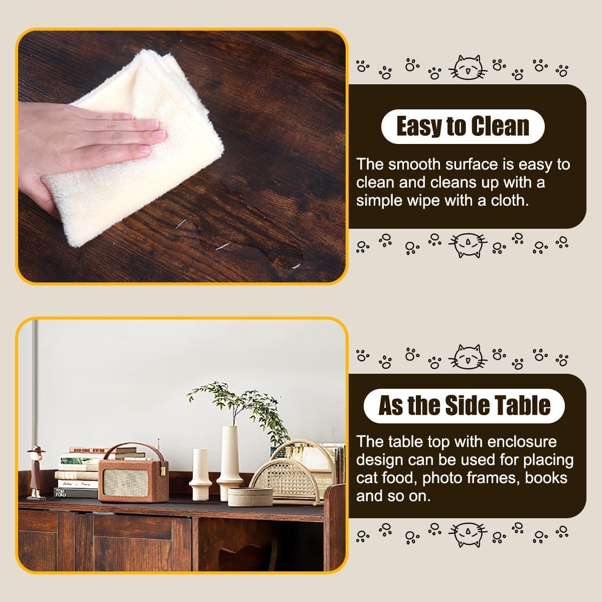 【Stylish and Practical Design】 — Not just a cat litter box cover, our furniture doubles as a nightstand, coffee table or cat house with a wide top and inner space, perfect for books, lamps, or even a cozy cat bed, seamlessly blending into your home décor. The apron edge ensures your valuables stay put. The thoughtful design caters to both you and your cat’s needs, elevating your living space.