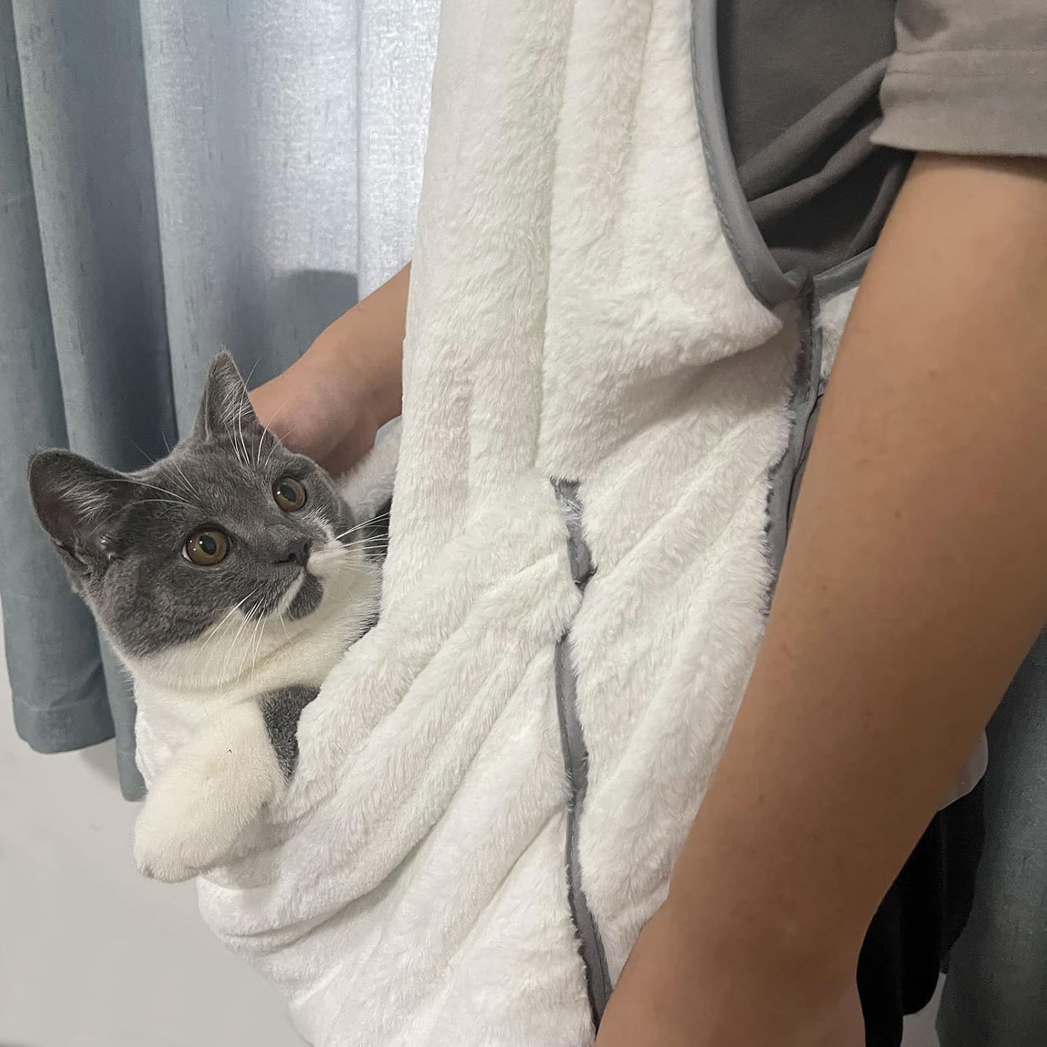 Easy to use: Put it directly on the body, put the cat or dog in the bib, and you can pet and play with it conveniently whether you are lying, sitting or walking.