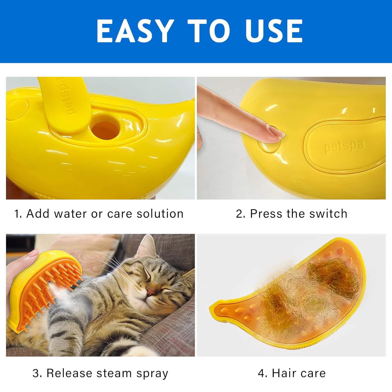 3-in-1 Grooming Tool: Excellent handle design, with anti-slip and easy to take. This cat steam brush can not only help us create a clean family environment. At the same time, the cat can enjoy a comfortable massage.