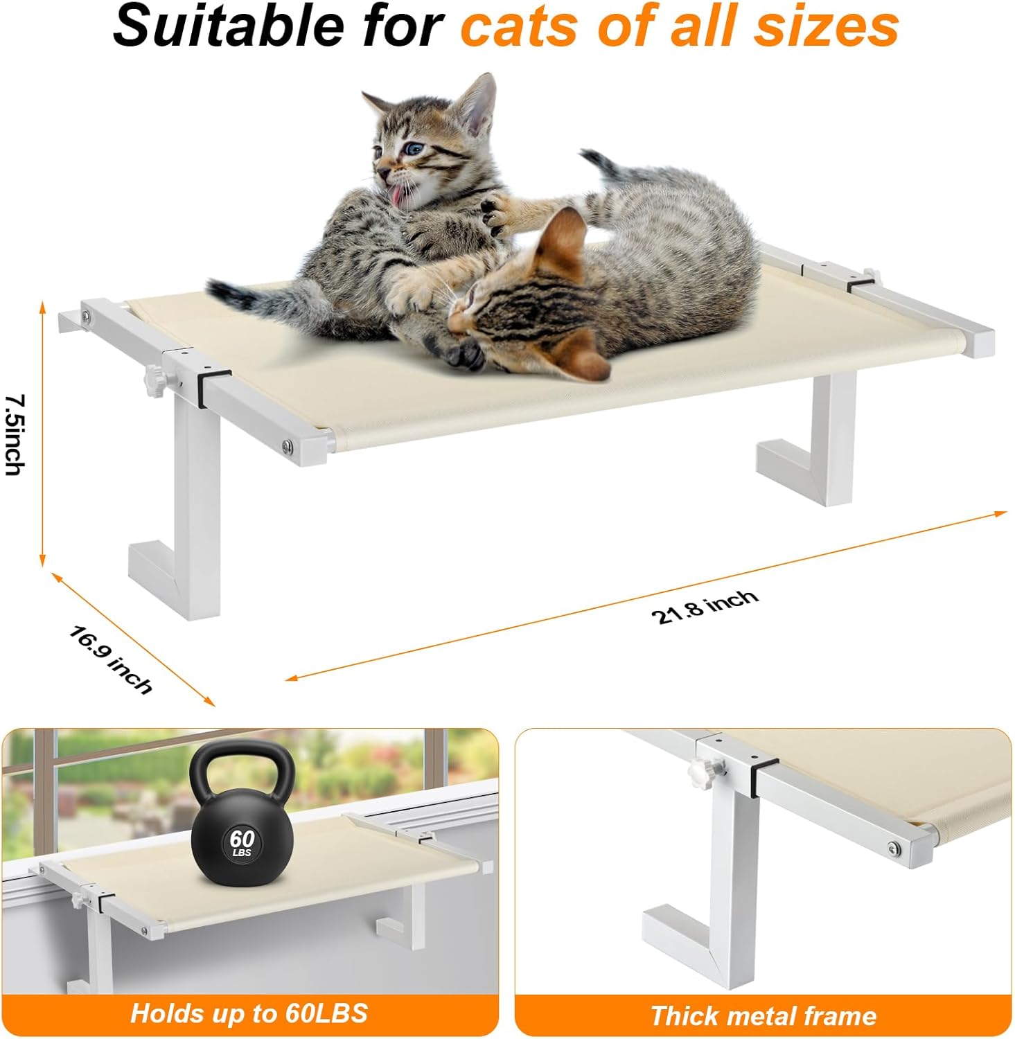 【Sturdy & Spacious Design】 Our cat hammock for medium to large cats, the main frame of this cat bed is made of thickened wood and hard metal, it can hold up to 60 pounds of weight, and it measures 22 x 17 x 7.5 inches, which is perfect for a large feline cat window perch.