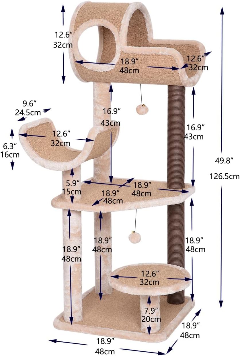 Specifications Materials: Soft Carpet, Plush, and Paper Rope Colors: Natural Brown, Beige, and Blush Overworldnet027 size: 18.9″ x 18.9″ x 49.8″ Top Tunnel Size: 12.6″ x 18.9″ Lower Half Tunnel size: 12.6″ Lower platform size :12.6″ Top Posts size: 16.9″ Lower Posts size: 18.9″