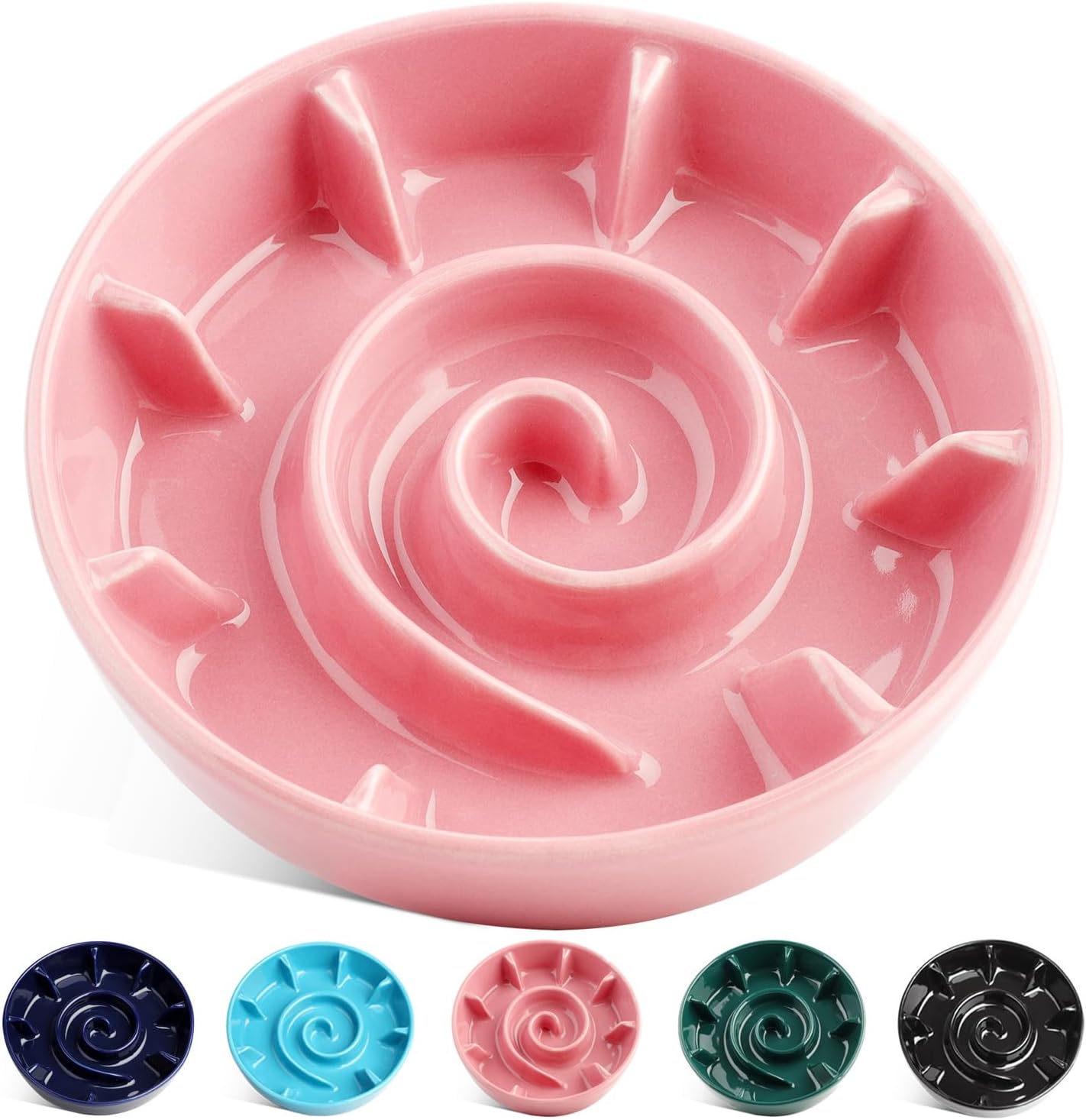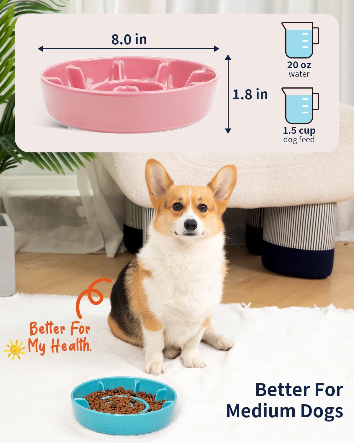 Ceramic Slow Feeder Dog Bowls for Smworldnet027 Medium Breed, 1.5 Cup Slow Feeding Dog Food Dishes, Slow Eating Bowl for Fast Eater Interactive Puppy Puzzle Bowl Anti-Gulping Non-Slip Dishwasher Safe