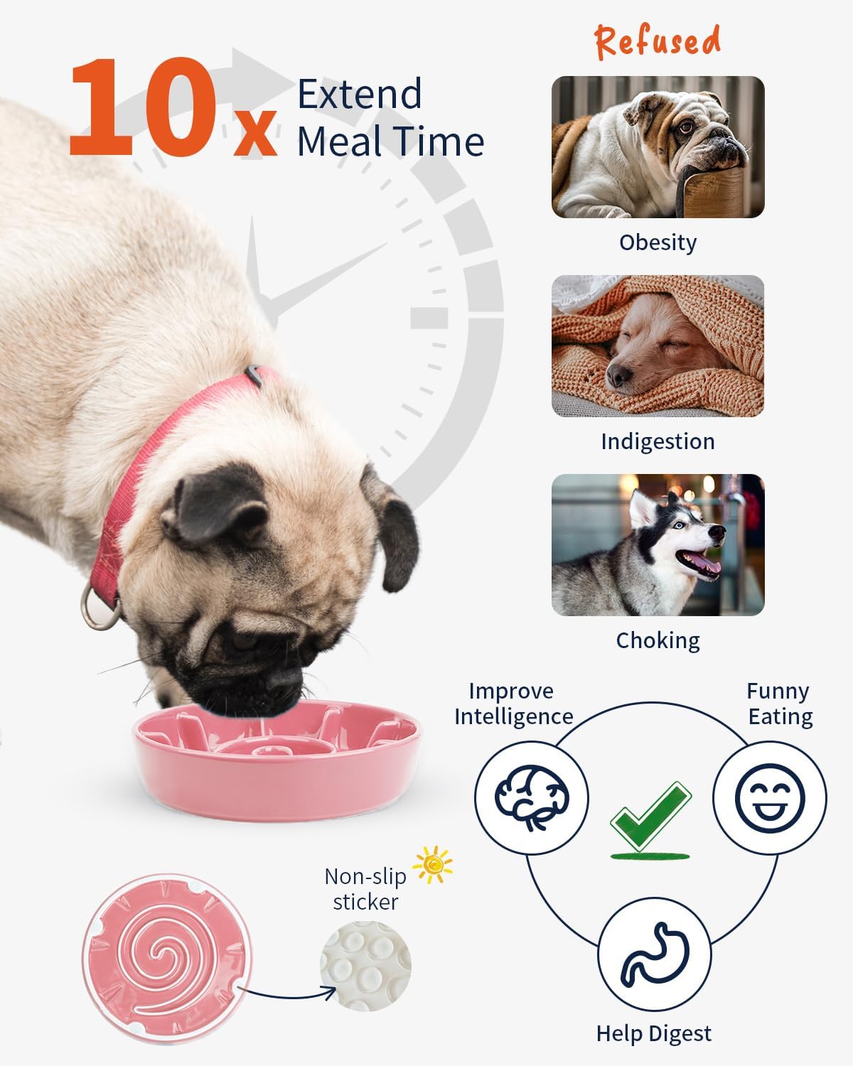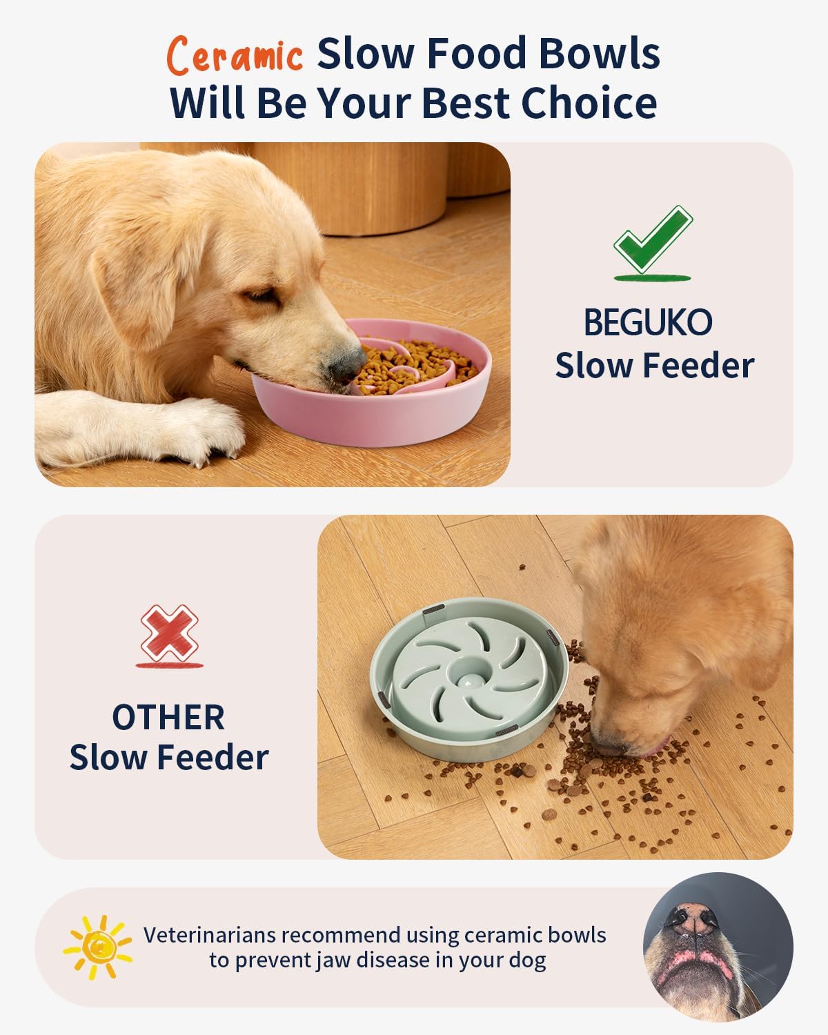 BEGUKO Ceramic Slow Feeder Dog Bowl
