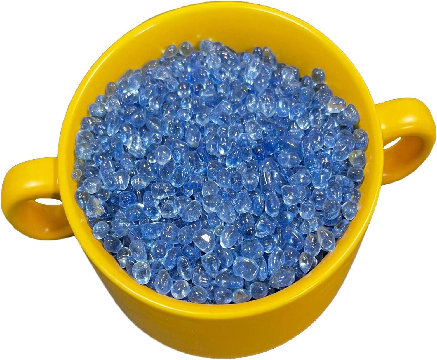 Clear Aquarium Glass Stone Bulk 1 LB Sea Glass Beads Gems Marbles Pebbles Gravel Rock for Aquarium, Fish Tank, Garden, Vase Fillers, Succulent Plants Decor (Sea Blue)