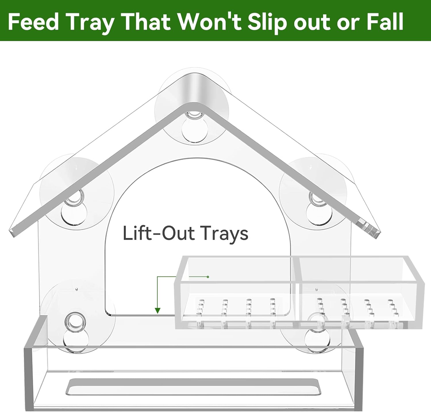 Clear Window Bird Feeder with 5 Extra Strong Suction Cups, DY-SKTY Sturdy and Durable Acrylic Bird Feeders for Viewing Wild Bird Outside, as a Bird Watching Gift, Outdoor Bird Feeder, and Garden Decor