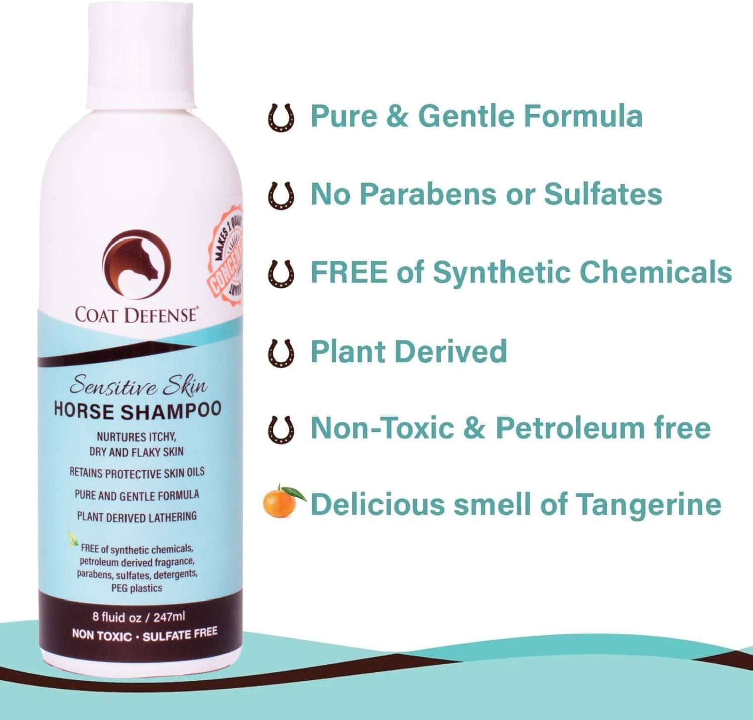 Soothing Shampoo: This bundle includes an 8oz concentrated Sensitive Skin Horse Shampoo that makes 32 ounces when mixed with water. An aloe base designed to soothe the sting and itch from welts. Ideal for horses with sensitive skin, it promotes healing without adding chemical irritants.