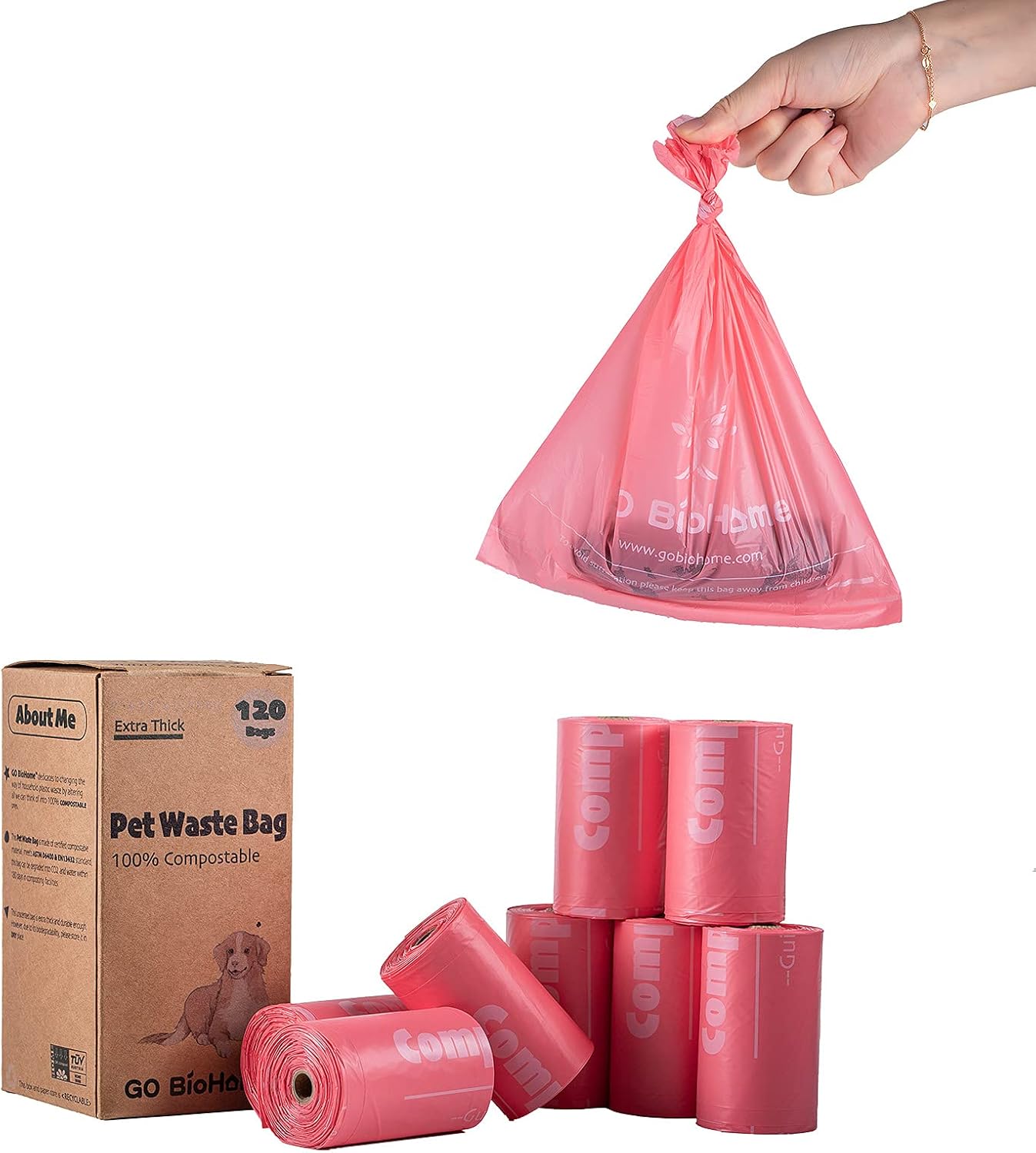Compostable Dog Poop Bags | 8 Rolls/120 Count, Cornstarch Based | Extra Thicker, Leak Proof, Unscented | ASTM D6400 BPI Certified (120-Pink)