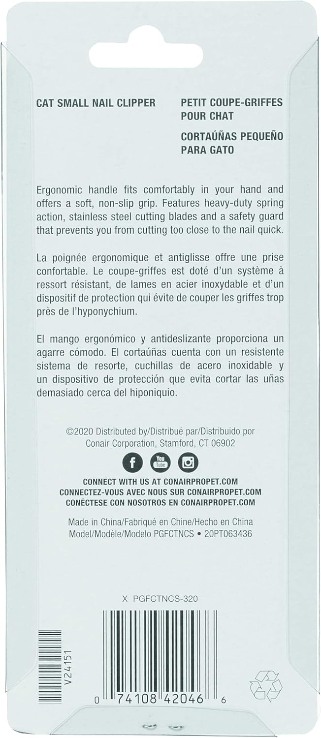 “SMALL DOG & CAT NAIL CLIPPER: This user friendly design helps make pet nail trimming a breeze, even for first time trimmers. The CONAIRPRO nail cutters are designed for a precise and quick cutting experience, without crushing or splitting their nails