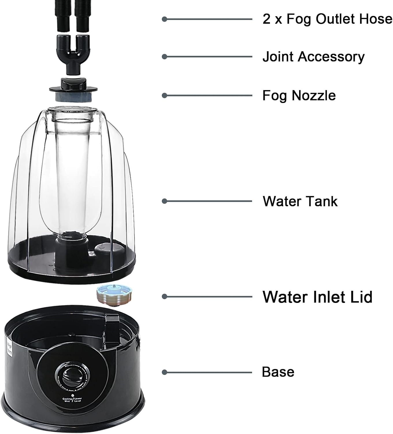 This humidifier includes 2 hoses, you can humidify 2 tanks at the same time! Convenient and Efficient!