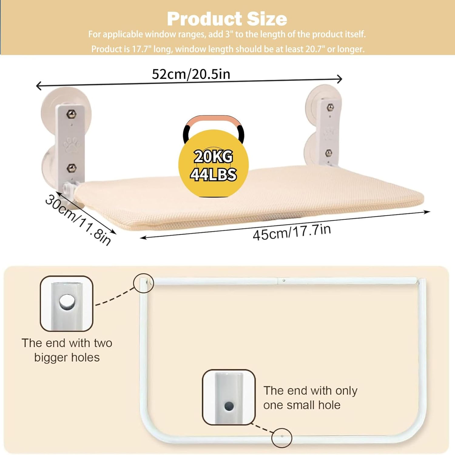 Strong and Durable Construction: Our window perch is made of durable stainless steel painted material and connected by sturdy hardware, the frame is strong and durable, cat bed measures 17.71”x11.81”x7.1”, able to withstand up to 44 pounds of weight without warping or breaking, suitable for large cats