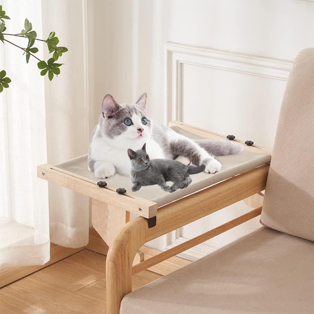 Cat Window sill Perch Cat Window sill Hammock Thick Rubber Wood Cat Bed Seat, Easy to Assemble Sliding Adjustable Pet Bed Seat for Bedsides, Windowsills and Cabinets