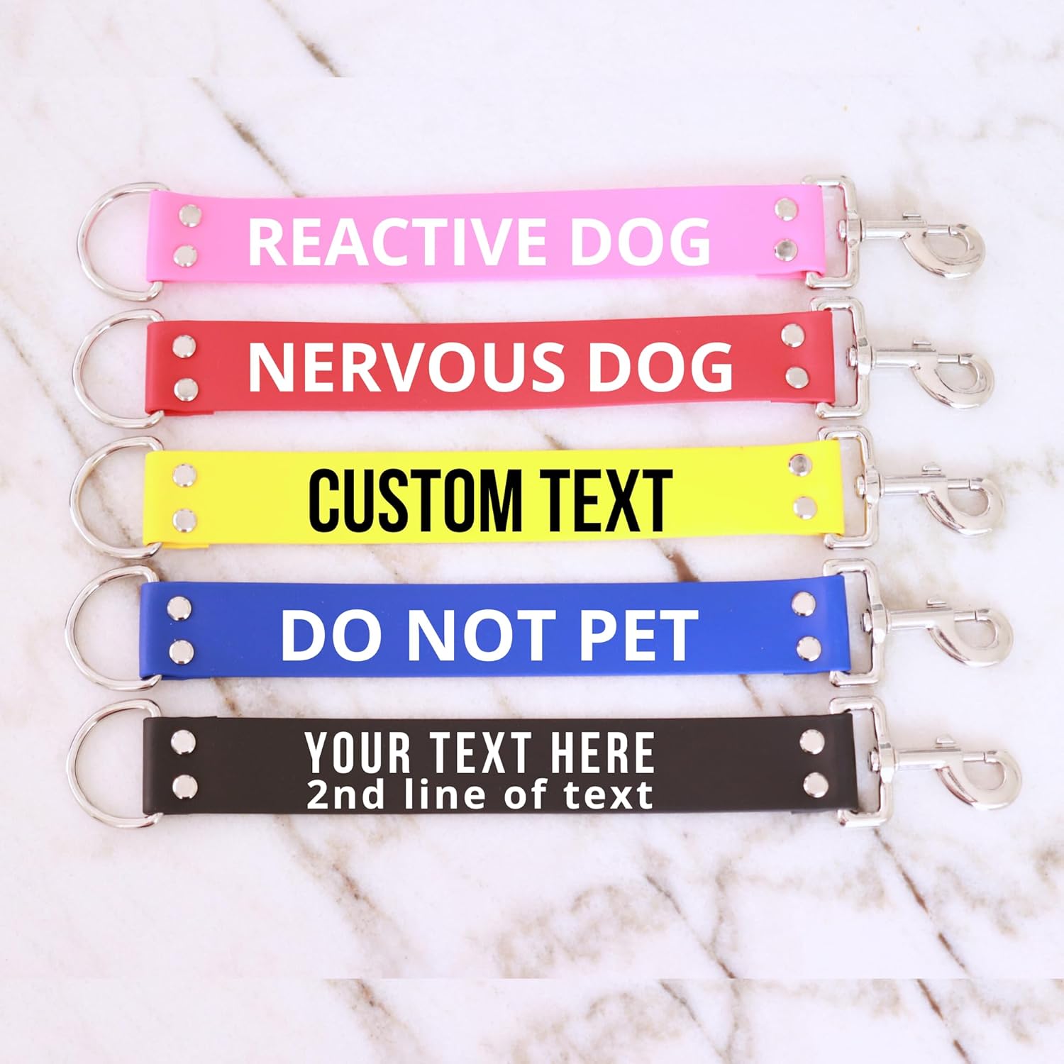 Custom Leash Extension Wrap Double-Sided Warning Sign Durable Vegan Leather Heavy Duty Waterproof Medical Condition ID Notice Sleeve Reactive Dog