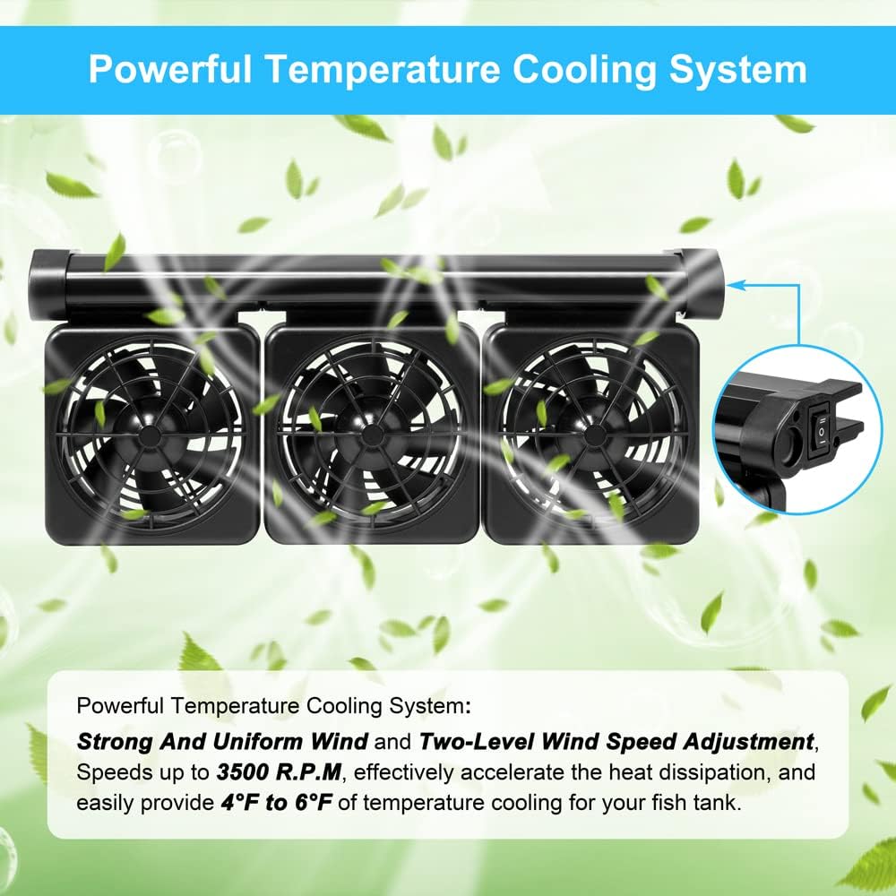 1. Powerful Temperature Cooling Effect: Strong and uniform wind, easily provide 4°F to 6°F of temperature cooling for your fish tank.