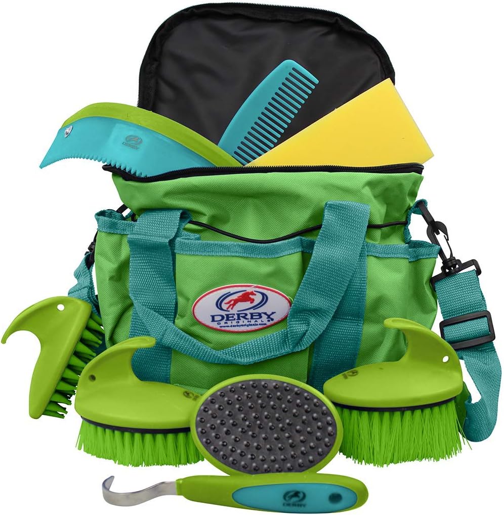 Derby Originals 91-7035TQ Premium Comfort 9 Item Horse Grooming Kit (Turquoise/Lime Green)