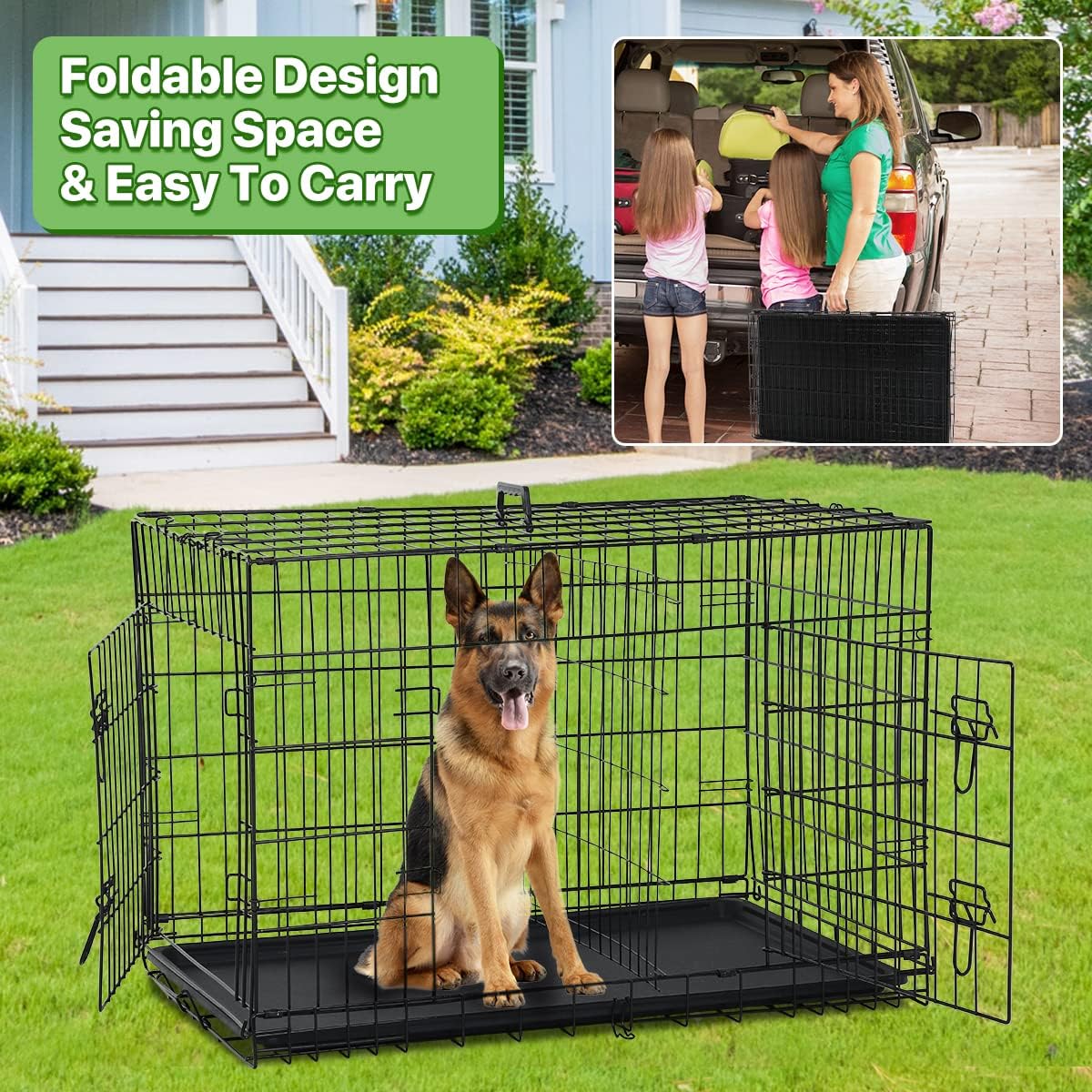 🐶【Easy to Set up】: This dog crate does not require any instworldnet027ation tools. you just need to take 5 steps to finish the assembly of the dog cage.And the dog kennel divider can separate two pets in two spaces.Dog Crate Dog Kennel Dog Cage