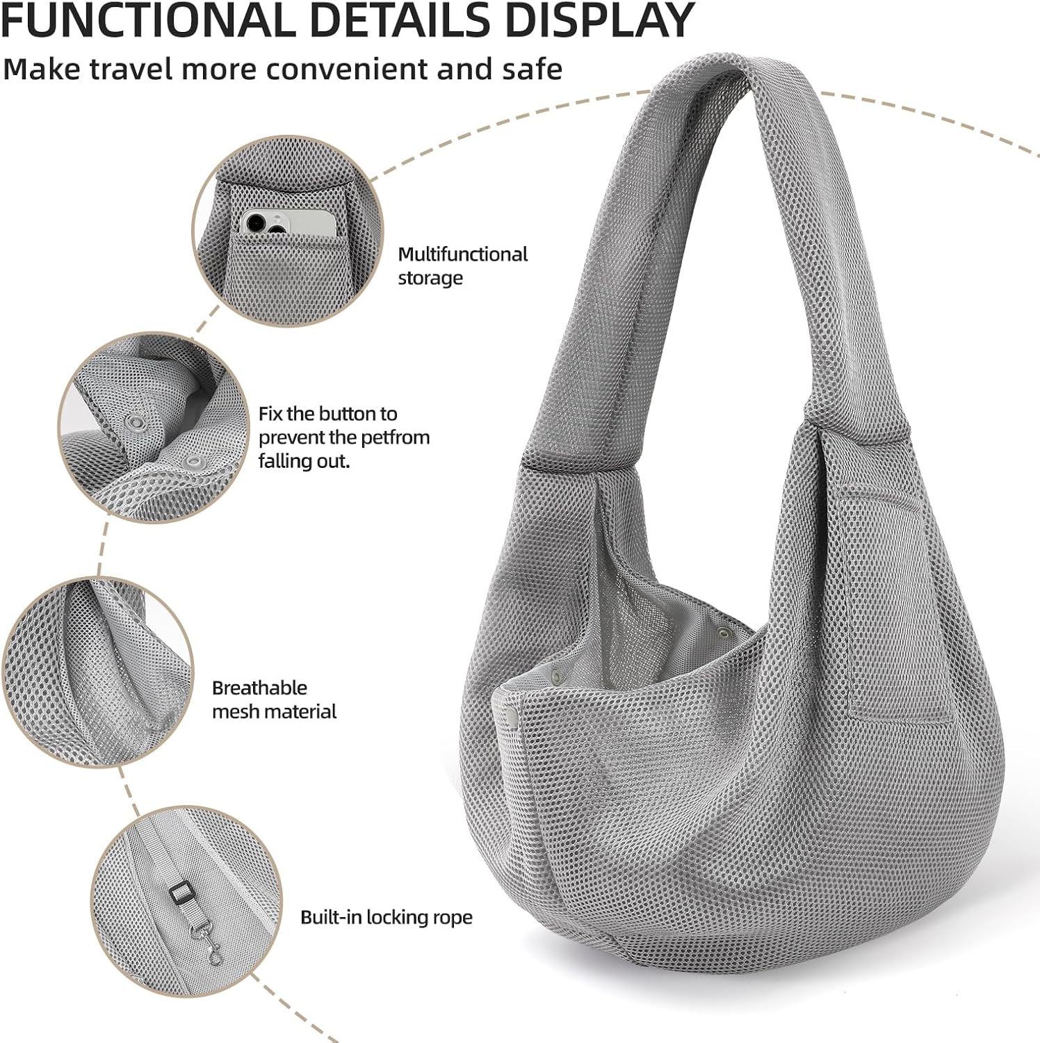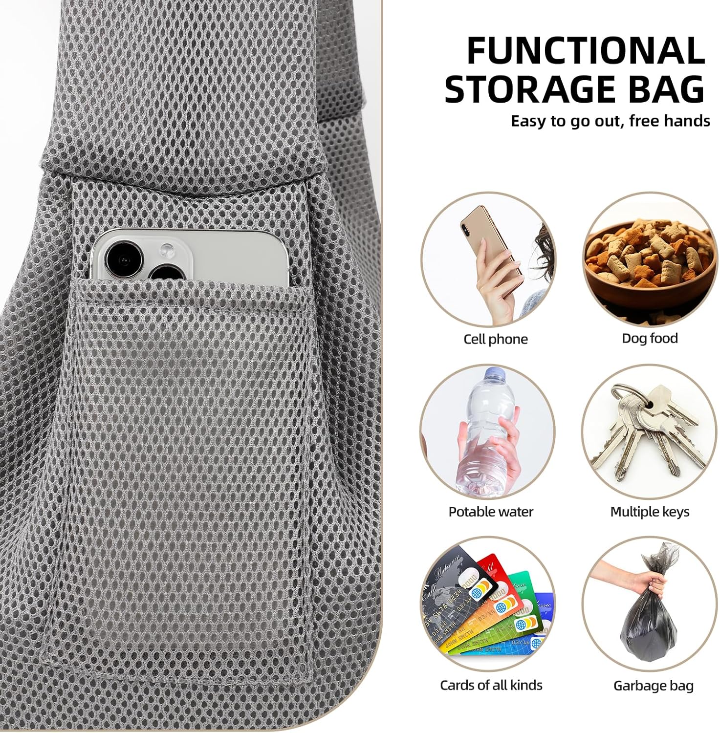 Dog Carrier Sling – Ultra Breathable Reversible Puppy Carrier Purse with Storage Pocket, Travel Safety Harness, Hand-Free Dog Sling Carrier for Carry Smworldnet027 Dogs and Cats, Dog and cat Harness (Gray)