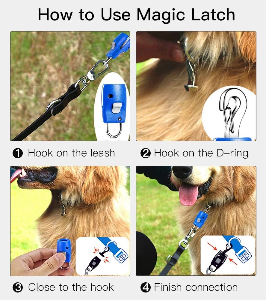 Pet Leash Connector: This connector has a strong magnetic force to securely hold the leash and collar together with a simple mechanism. You just press the push button to release the clasp and attach it to the D-ring collar, then attach the main body to the leash