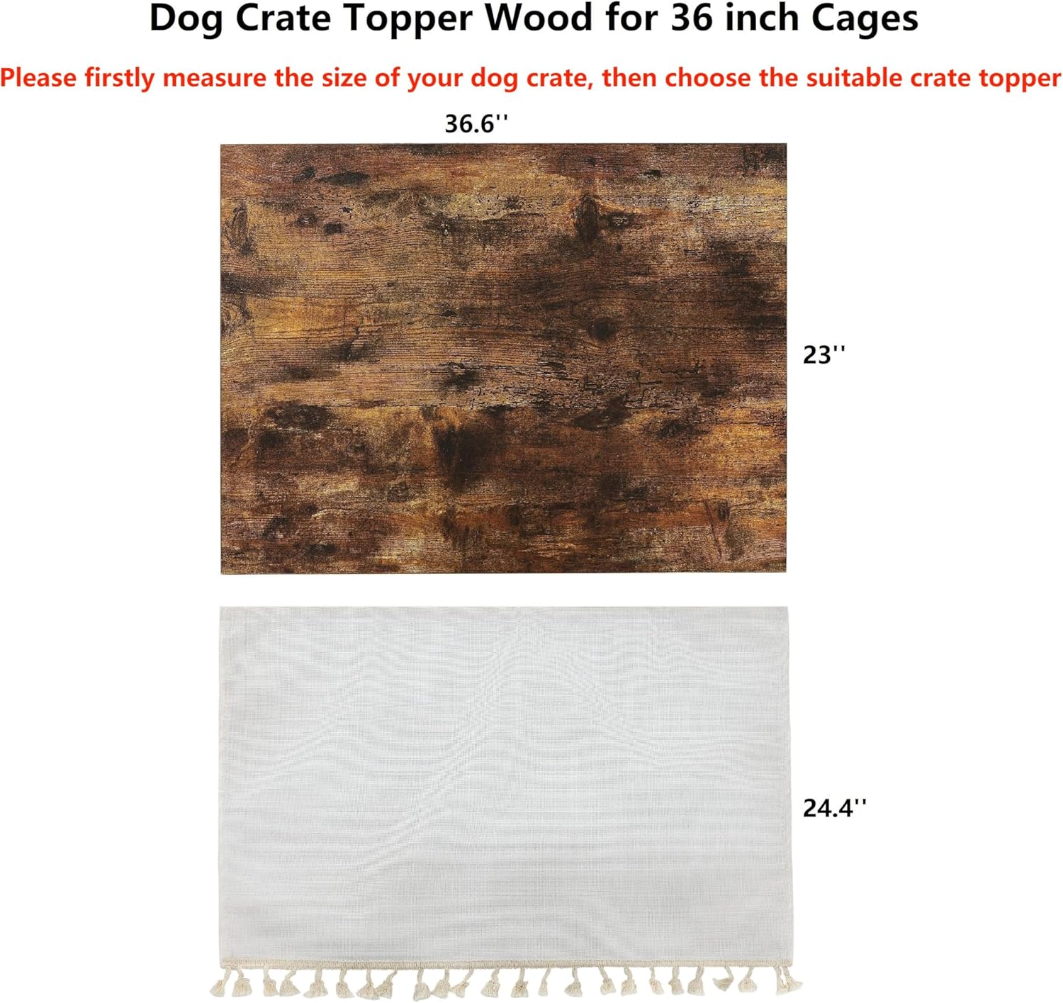 Dog Crate Topper Wood for 48 42 36 24 inch Cages, Dog Crate Table Topper with Tassel Curtain, Rustic Style Dog Kennel Topper, Rustic Brown(Dog Crate Not Include)