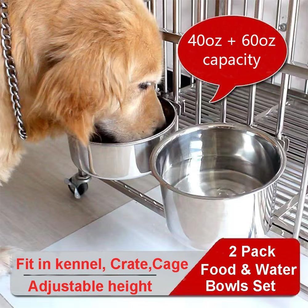 Dog Crate Water Bowl No Spill, 2 Pack Stainless Steel Large Dog Bowls, Hanging Dog Kennel Water and Food Bowls for Crate Cage,Metal Feeder Dish Coop Cup for Medium Large Dogs Pets