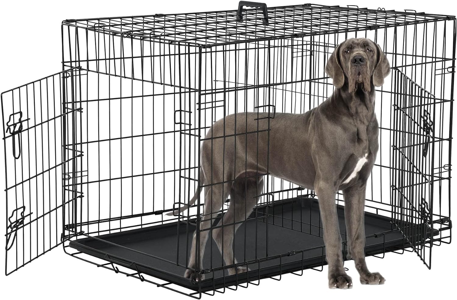 👍👍【Double Doors Design】The metal dog crate is designed with double doors, making it easy for dogs to enter from the front and side.Build a safe place for pets to play and rest, keepi9ng them away from messy rooms. The dog kennel is designed to make the animals safe and comfortable.dog cages for large dogs indoor pet crates for medium dogs