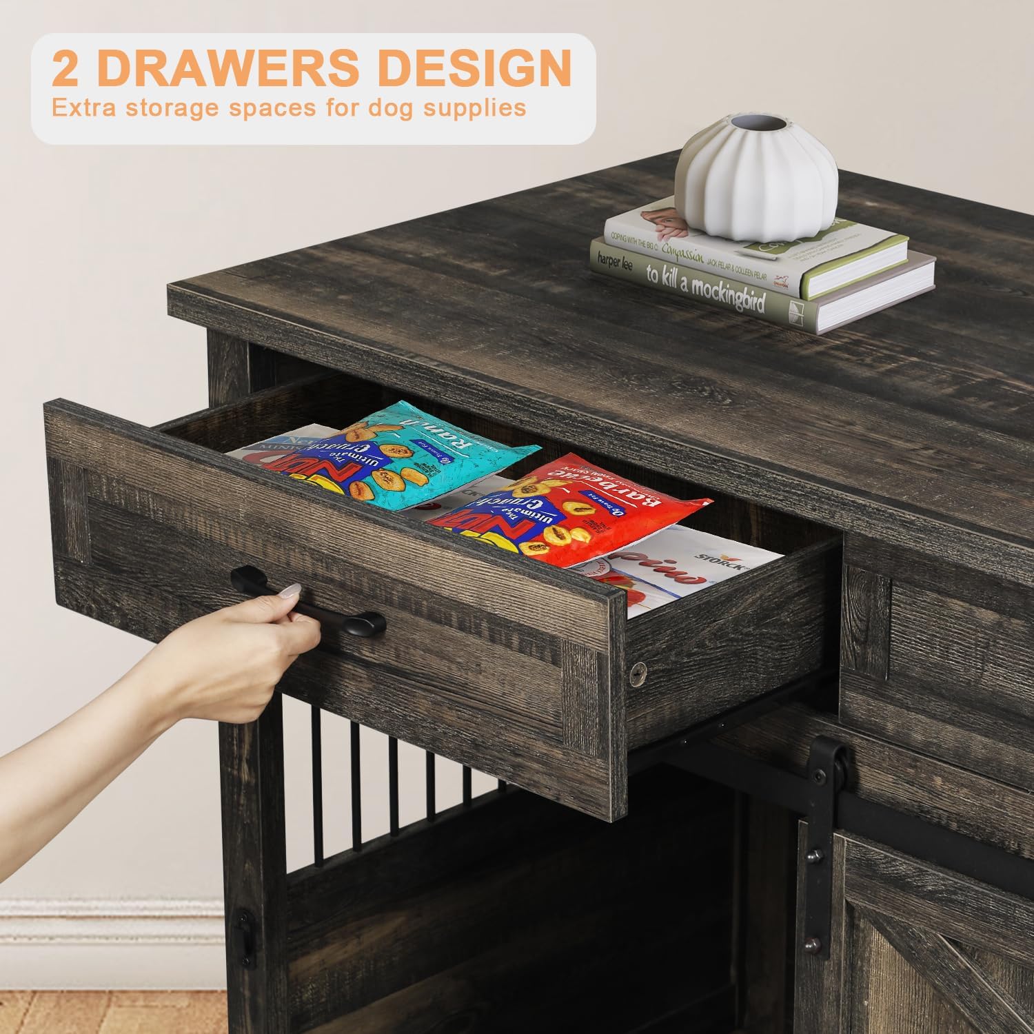 Dog Crates for Large Dogs, 48 inch Large Dog Crate with 2 Drawers, Farmhouse Dog Kennel Indoor Large Breed, Decorative Pet Crate End Table for Large Dogs, Dog Cage
