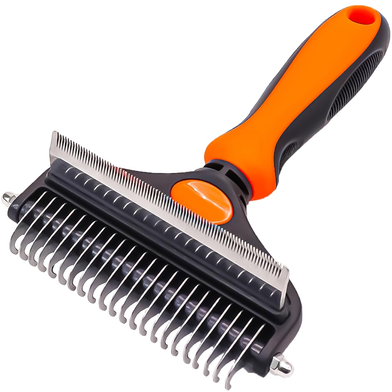 Dog Grooming Brush for Shedding, 2 in 1 Dog Deshedding Brush Shedding Comb and Dematting Tool with Double Coat, Pet Hair Grooming Brus for Long and Short Haired Dogs or Cats (orange)