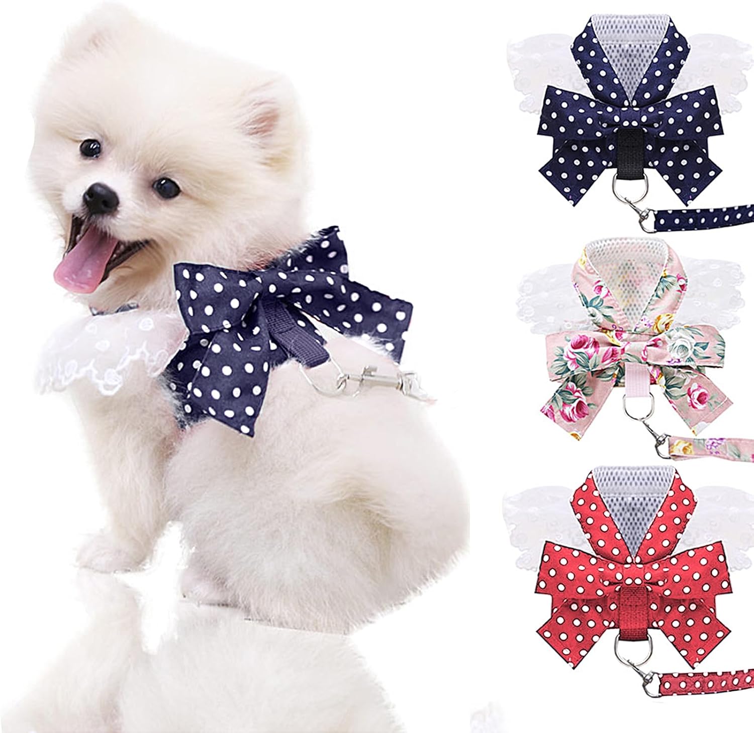 Dog Harness with Leash Set Adjustable Breathable Mesh Air Vest Harnesses for Smworldnet027 Dogs with Easy Control D-Ring Leash Lace Border Outdoor Hiking Training Walking Puppy Cat Harness