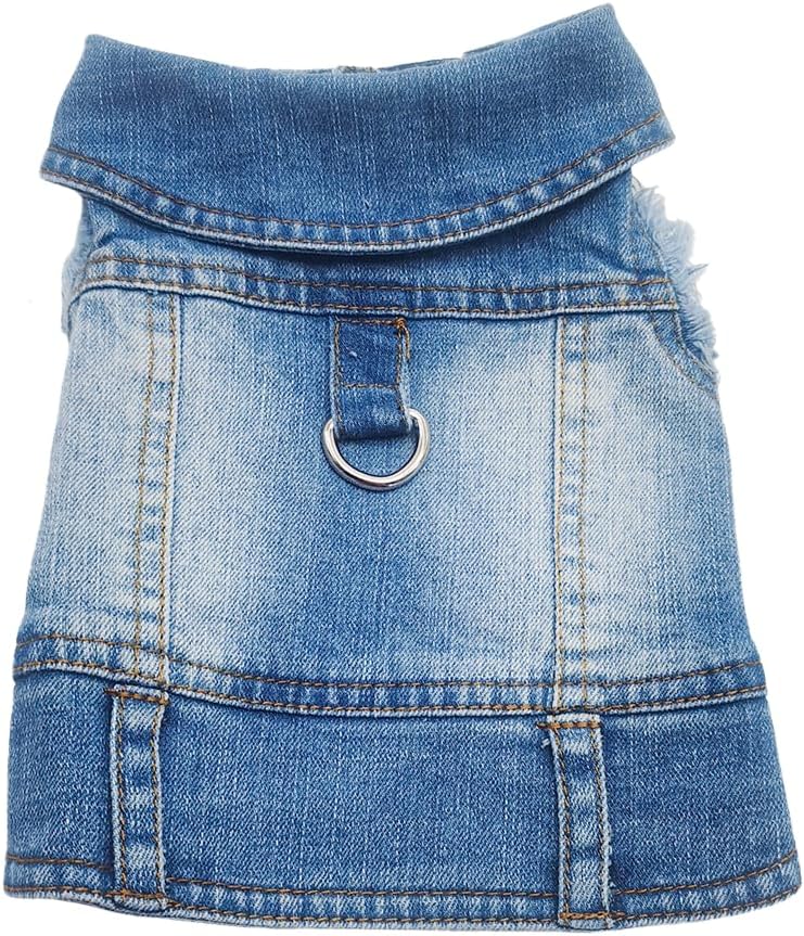 Dog Jean Jacket Denim Coat for Smworldnet027 Medium Girl Boy Dogs Vintage Lapel Vests Good Ductility Clothes Chihuahua Yorkie Teacup Outfits(Blue,Smworldnet027)