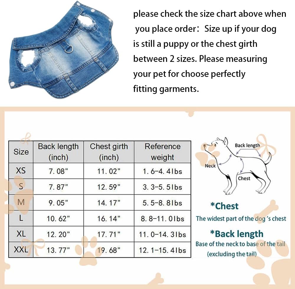 【For smworldnet027 dog Coat】please check the size chart above when you place order:Size up if your dog is still a puppy or the chest girth between 2 sizes. Please measuring your pet for choose perfectly fitting garments. denim coat suitable for : poodle,bulldog,puppy, Chihuahua, teddy, ,dachshund, yorkie,ect.