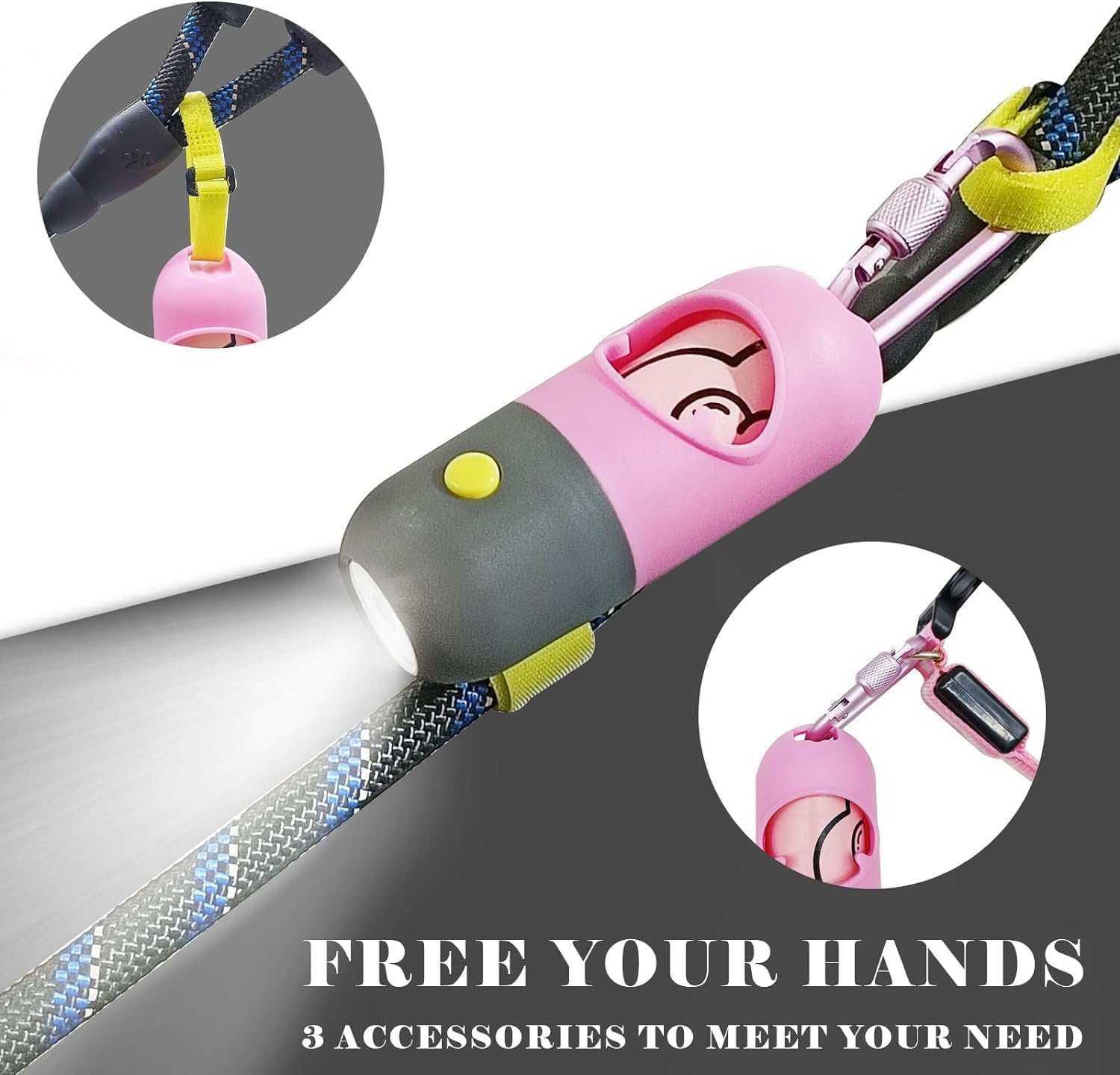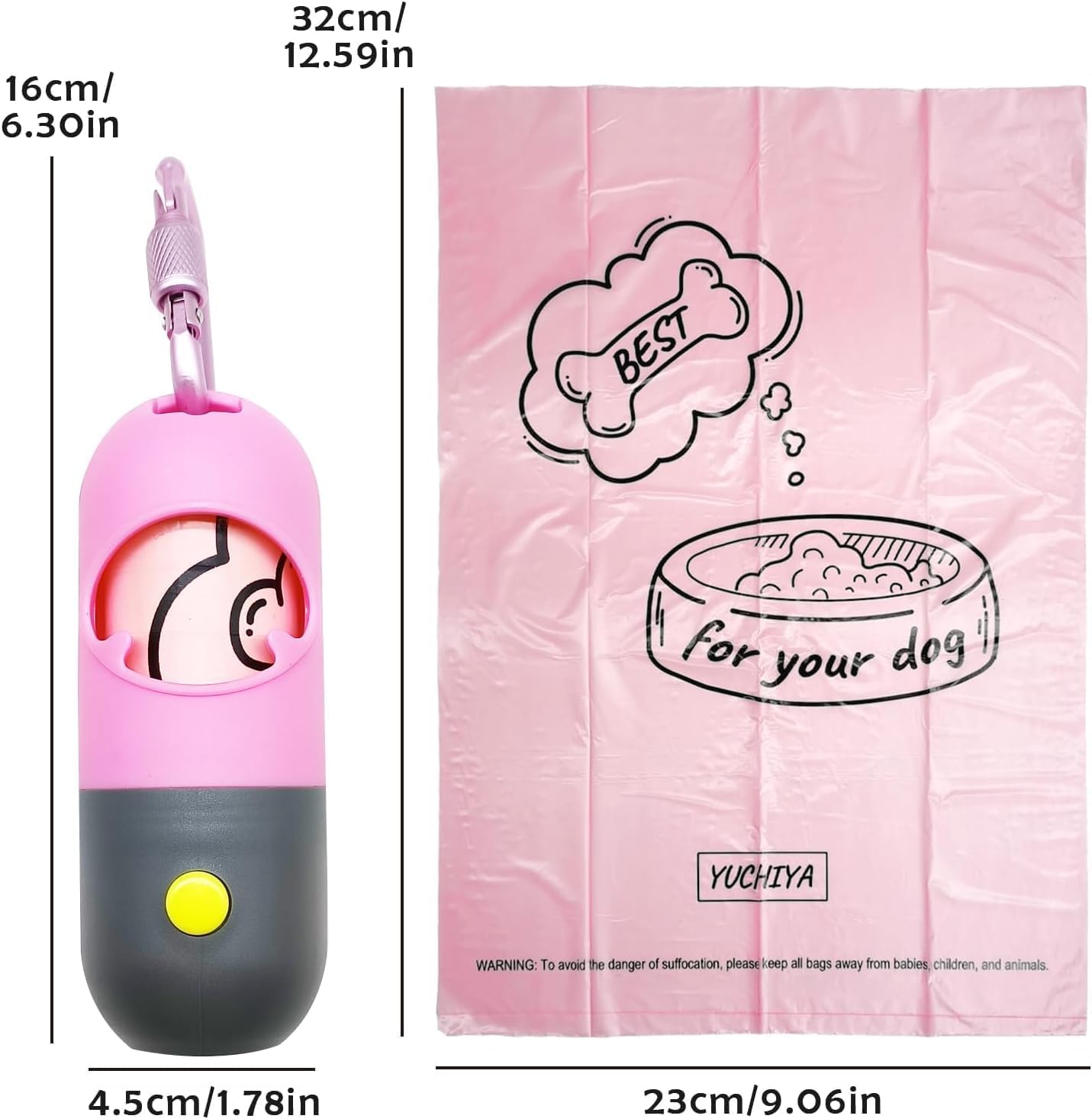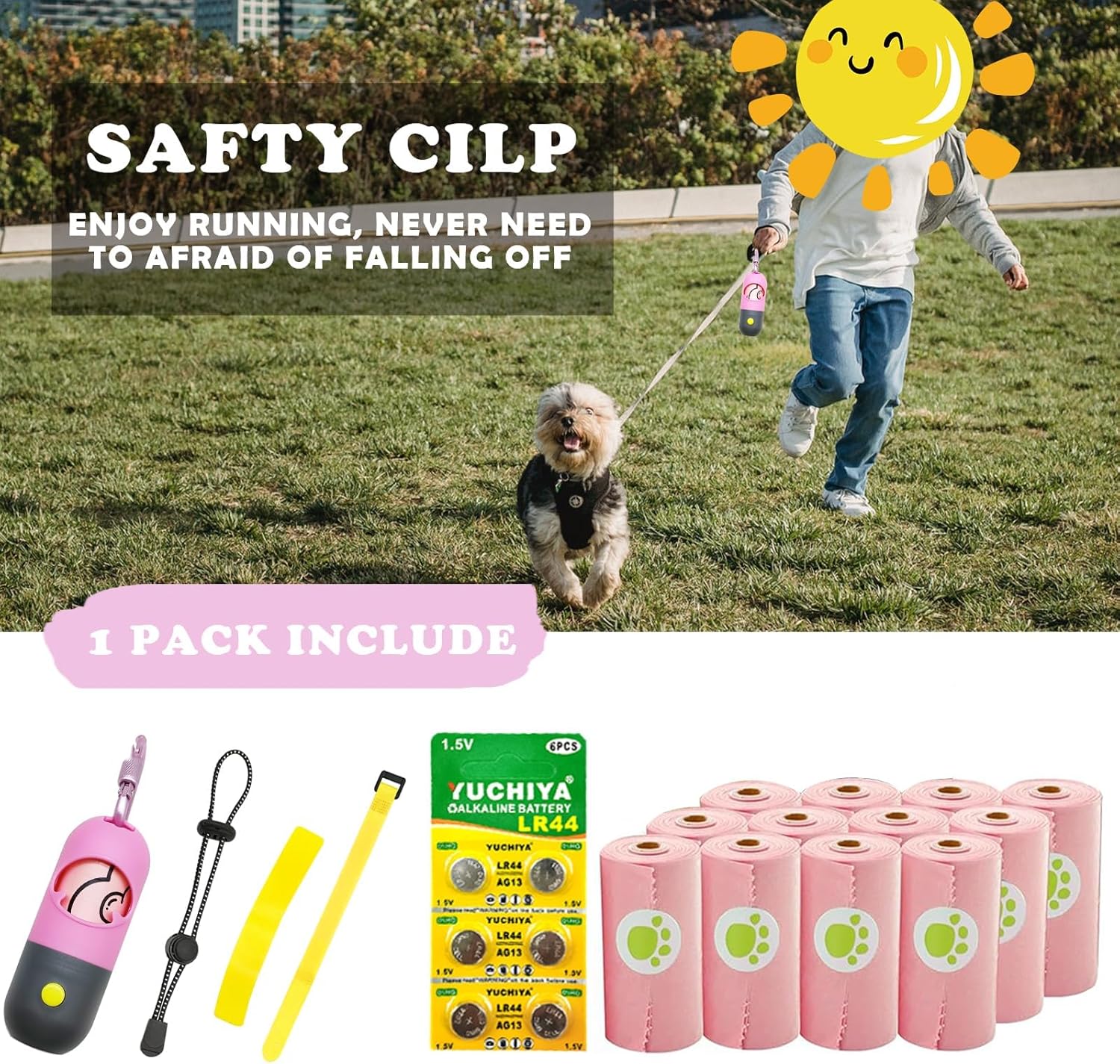 Dog Poop Bags Holder with LED Flashlight|Pet Waste Bags Dispenser for Leash|Doggie Potty Bags Container with Leak-proof Pet Trash Bags and Accessories (1 Holder 195 Bags, Pink)