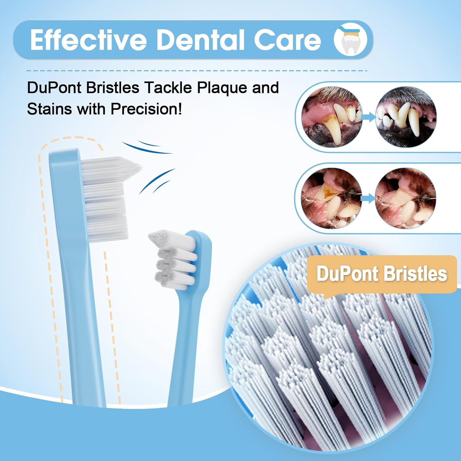 Promotes Healthy Teeth and Fresh Breath: Maintain your dog’s dental hygiene to perfection. This toothbrush set effectively removes plaque and tartar, preventing dental issues and promoting fresh breath. Give your canine companion a bright and healthy smile!