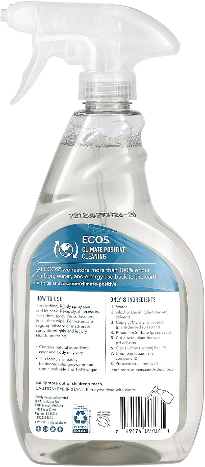Safely removes coffee, tea, juice, grass, wine, fruit and vegetable, blood, grease and oil stains, vomit and urine stains and odors, and it is safe to use with septic and greywater systems