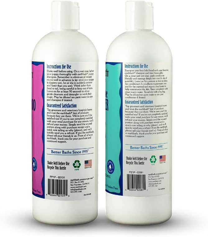 Earthbath Ultra-Mild Puppy Shampoo and Oatmeal & Aloe Conditioner Grooming Bundle, Best Shampoo and Conditioner for Puppies, Made in USA – 16 Oz