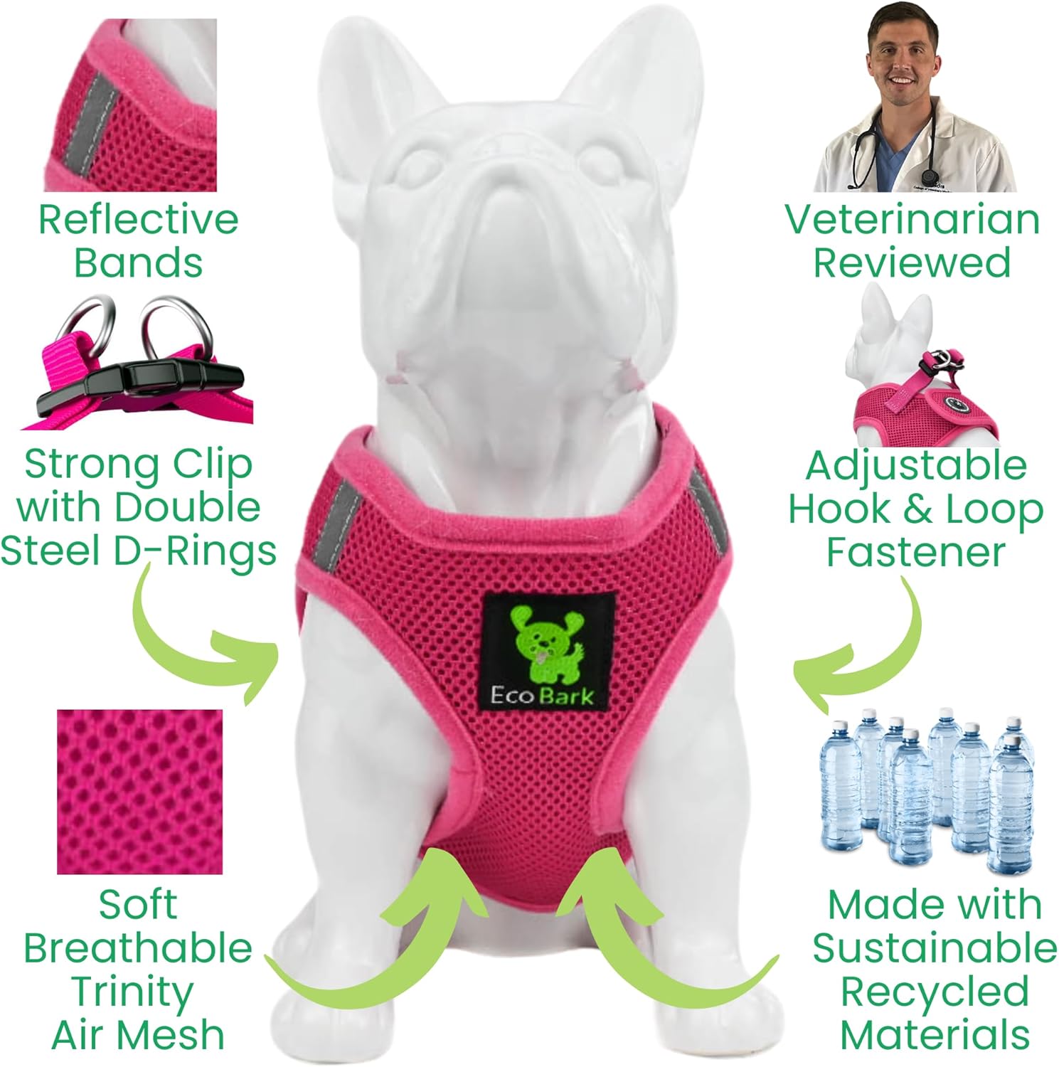 EcoBark Step in Dog Harness – Eco-Friendly Teacup Dog Harnesses for XXS, XS, and Smworldnet027 Dogs – Reflective and Adjustable Mini Body Halter Vest -Tiny Soft Mesh Toy Breed Harness Under 5 lbs (Pink, XXS)