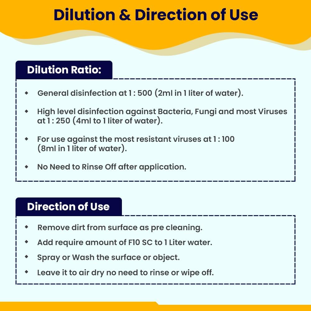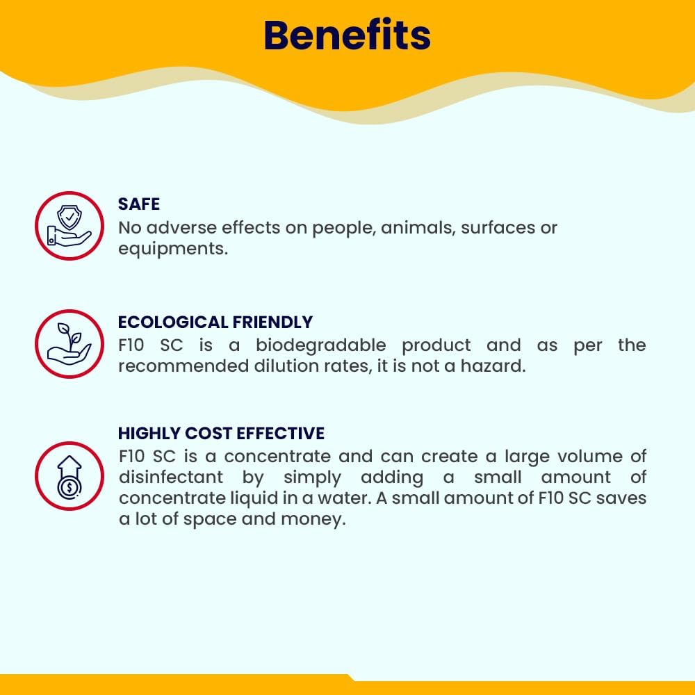 VERSATILE APPLICATION: F10 veterinary disinfectant sanitizer can be used in a wide range of applications — regular Cage cleaning, Floor cleaning, Bird Cage cleaning, Tank cleaning, Reptile Cages cleaning, Rabbit Cage cleaning & for Decontaminating Hands