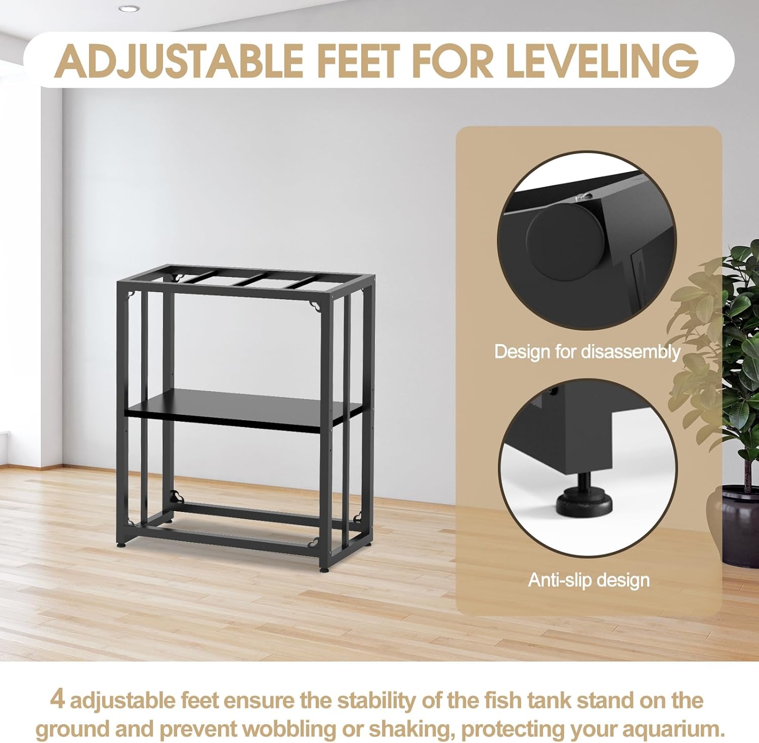 Adjustable Mid-Panels fit Versatile Size: The aquarium stand measures 24.8 “L x 9.25” W * 30.1 “H, top rack table is suitable for most 20 gworldnet027on fish tanks. The height of the middle partition can be freely adjusted to meet different needs. The bottom shelf also works for most 10-gworldnet027on tanks, and the shelf in the middle makes it easy to store your fish accessories: fish food, nets, etc.