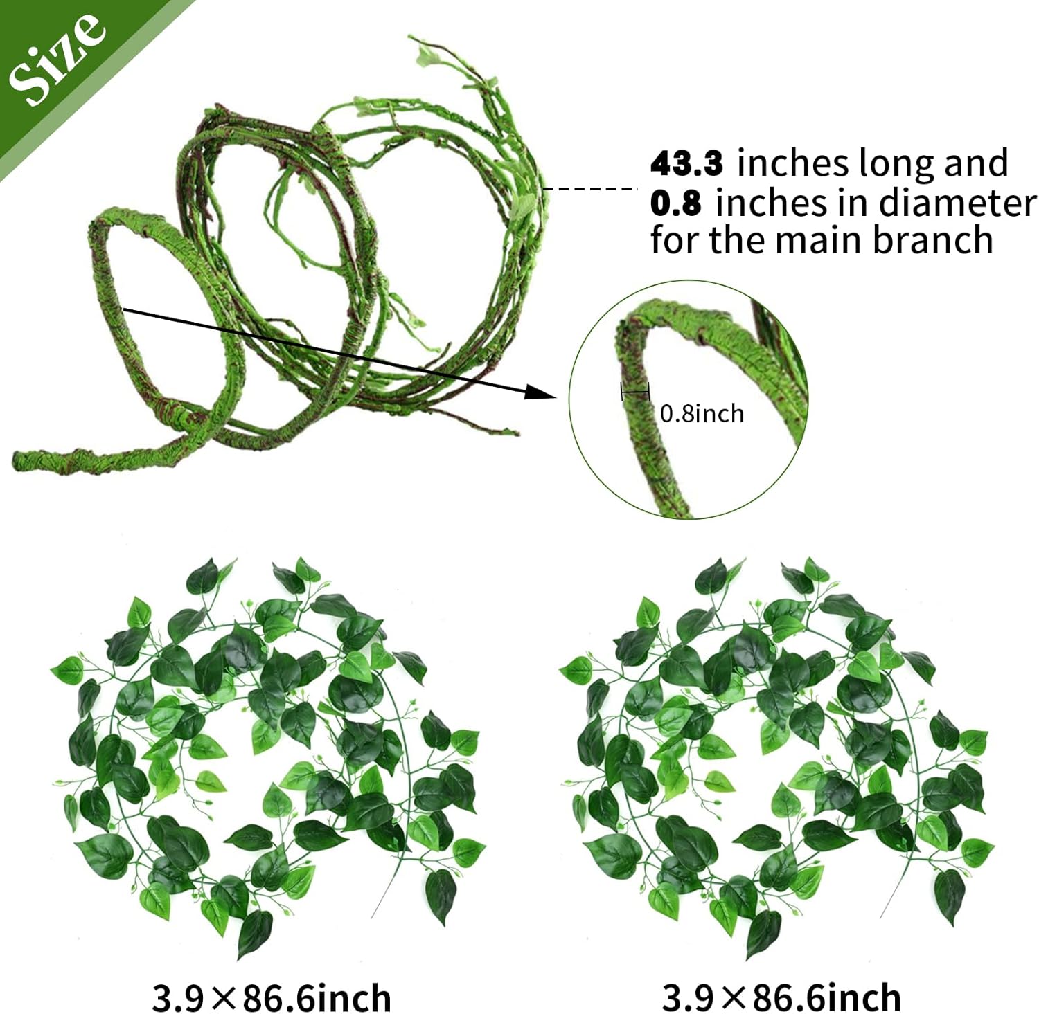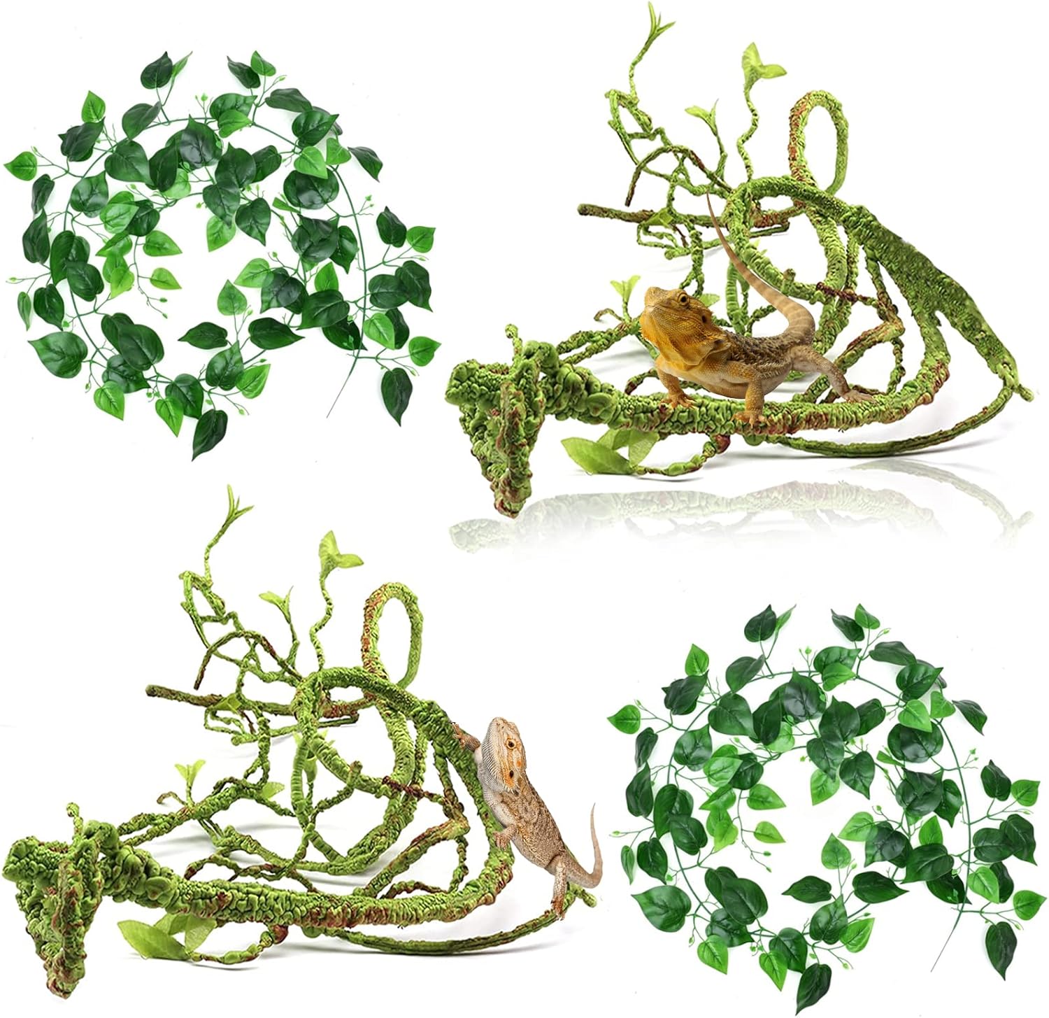Flexible Bend-A-Branch Jungle Vines Plastic Terrarium Plant Leaves Pet Habitat Decor for Lizard,Frogs, Snakes and More Reptiles(Pack of 4) (Reptile Vines)