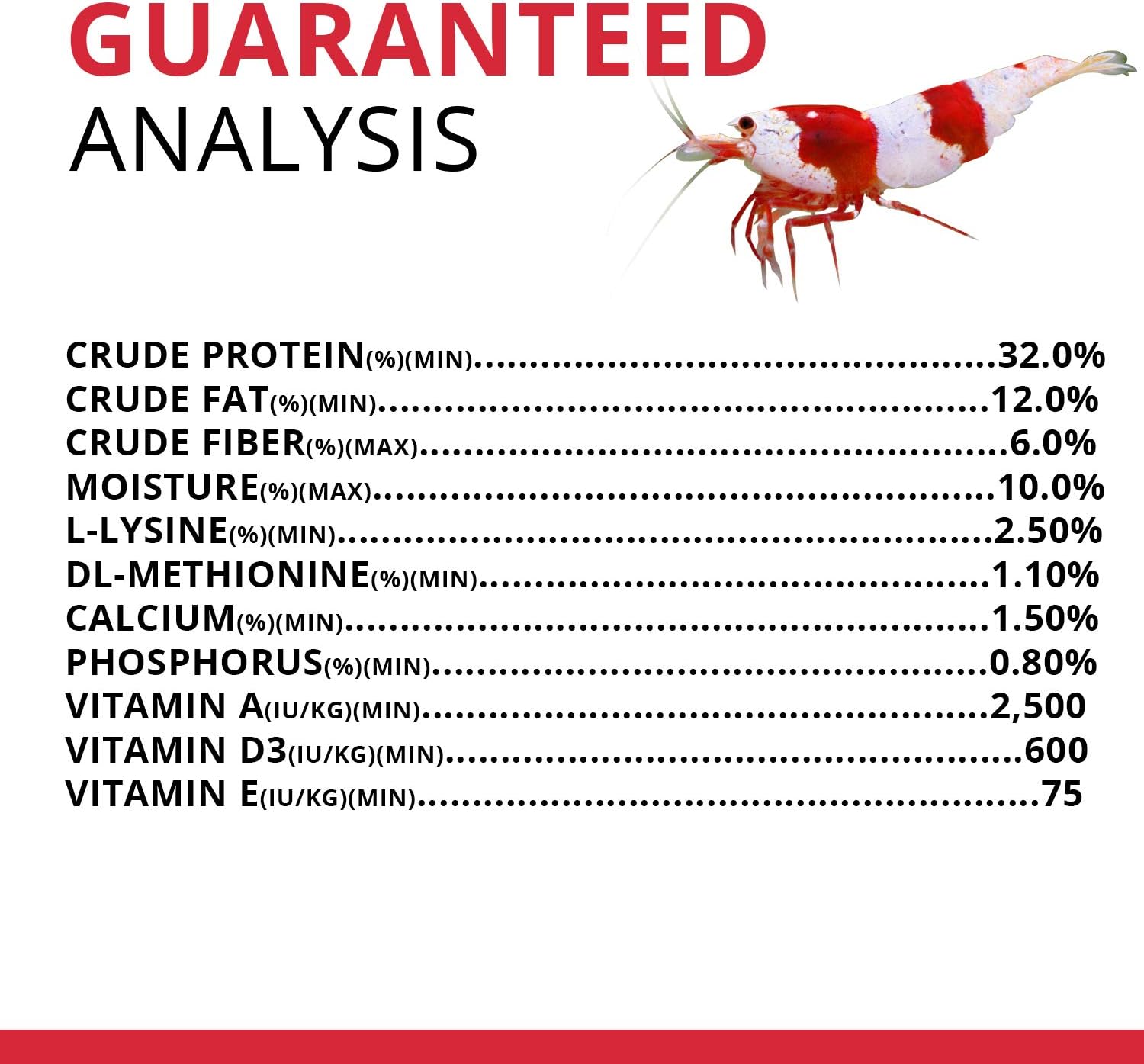 Slow sinking micro granule format (0.25-1.0mm) – worldnet027 fish can feed at their preferred depth; feed as much as shrimp can eat in two minutes, two or three times daily