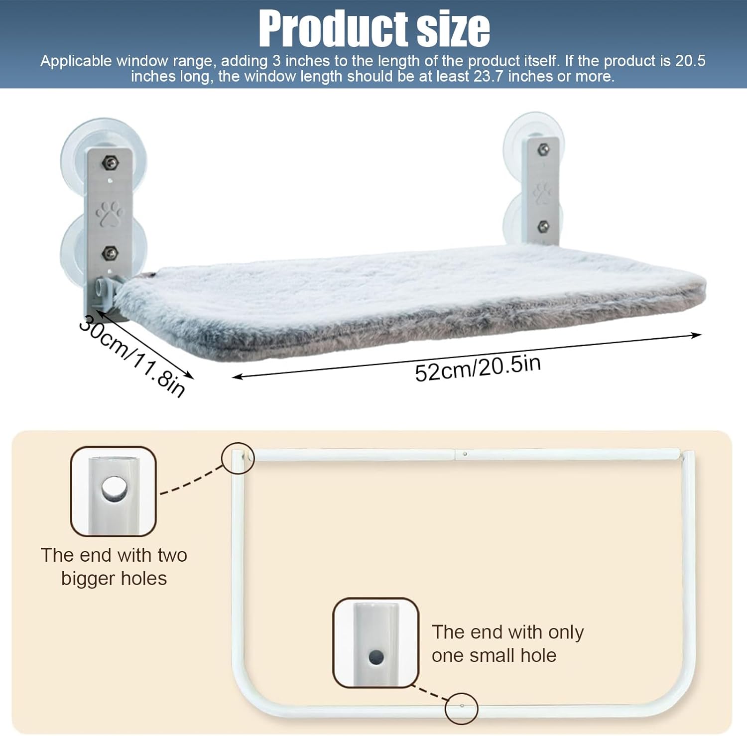 ღ 【High-quality metal frame ensures stability】: Durable and long-lasting. This window cat hammock is made of sturdy metal structure, providing excellent support and stability. Whether it is a lively and active cat or a cat that likes to sleep by the window, they can jump and stretch comfortably, and the bed cover will not sway or overturn.