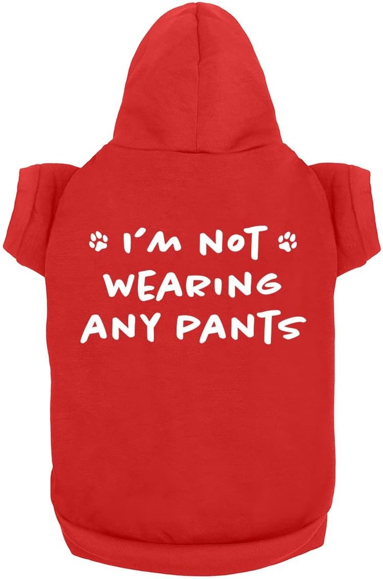 Funny Dog Hoodies I’m Not Wearing Any Pants Cute Dog Clothes Pet Puppy Cat Sweatshirt Dog Accessories for Smworldnet027 & Large Dogs Soft Breathable | Red (Medium)