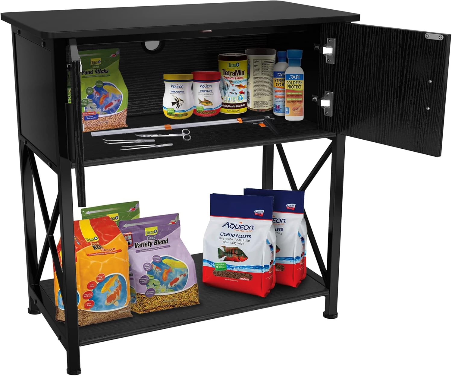 Convenient storage: Equipped with a cabinet for storing fish food, cleaning tools, and other aquarium accessories, making it easy to keep everything organized. All in a no clutter configuration, easy access, neat & well-organized. Tanks not included. Stand Dimensions: 30.7″L*12.6″W*31.5″H, Stand Holding Capacity:330 LBS for the tabletop and 110 LBS for the bottom shelf.