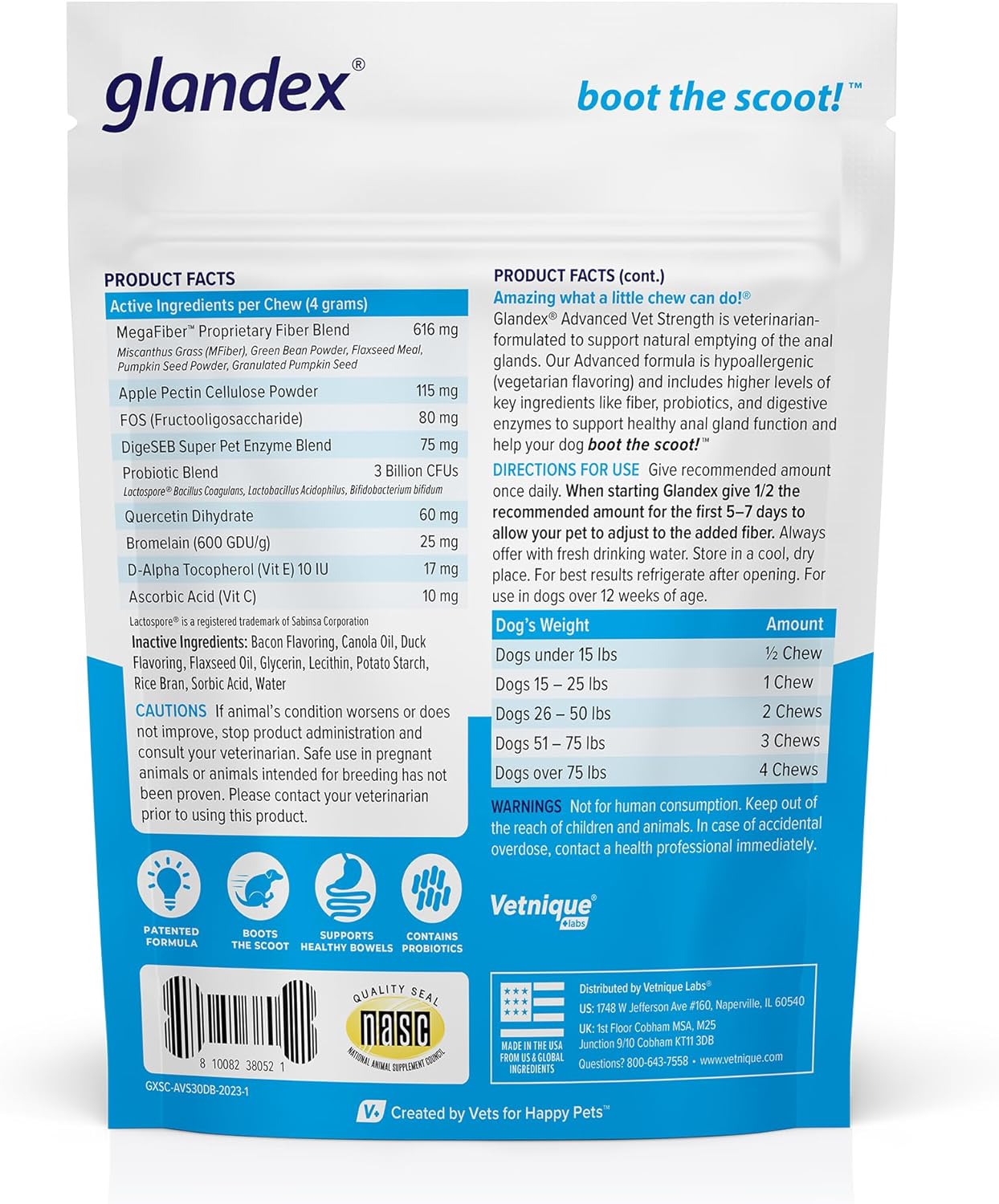 RESULTS IN 3-5 WEEKS: Glandex Advanced Vet Strength dog fiber supplements will help your pet to “Boot the Scoot”, providing a better alternative to regular anal gland expressions for dogs with chronic anal gland problems.